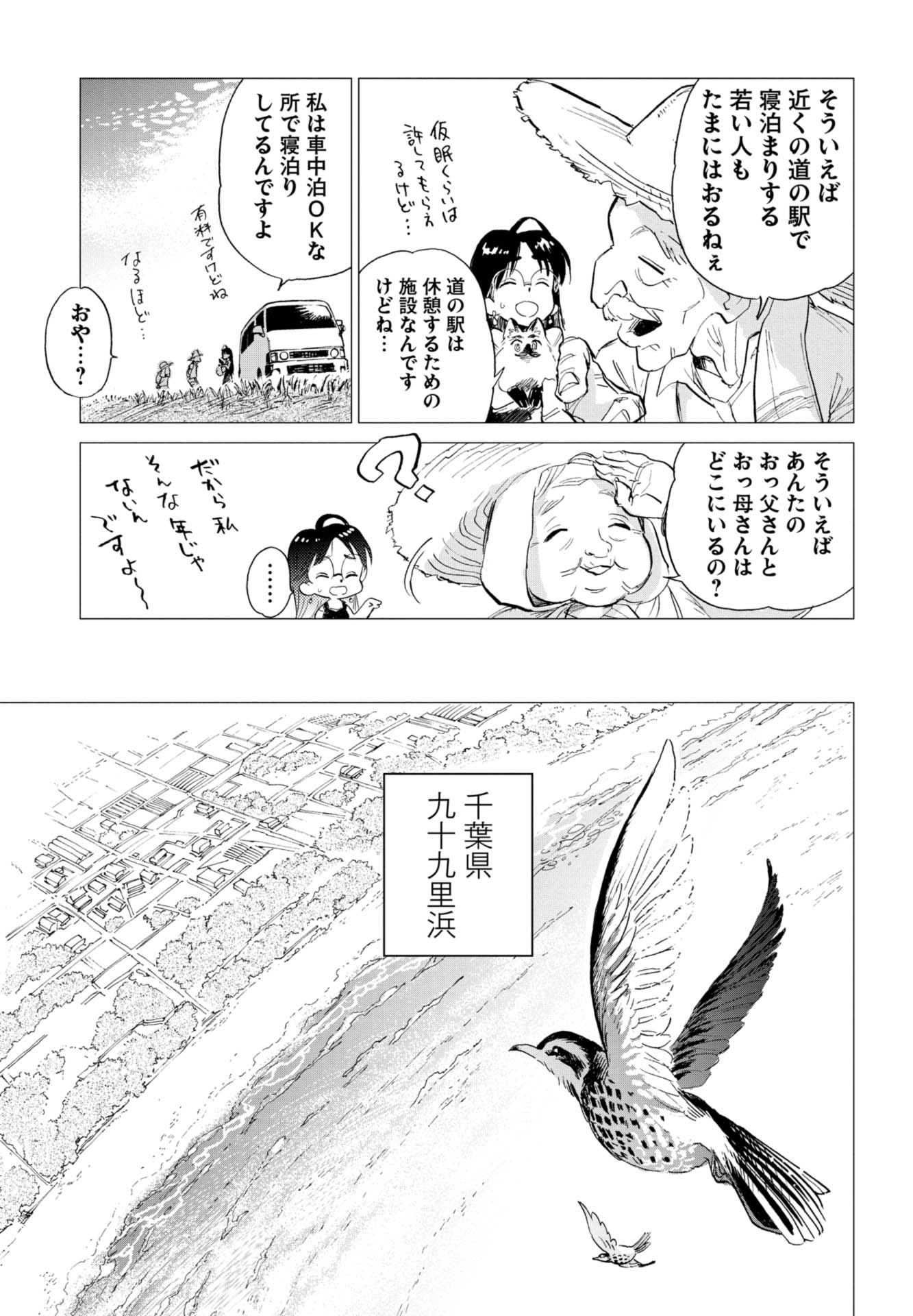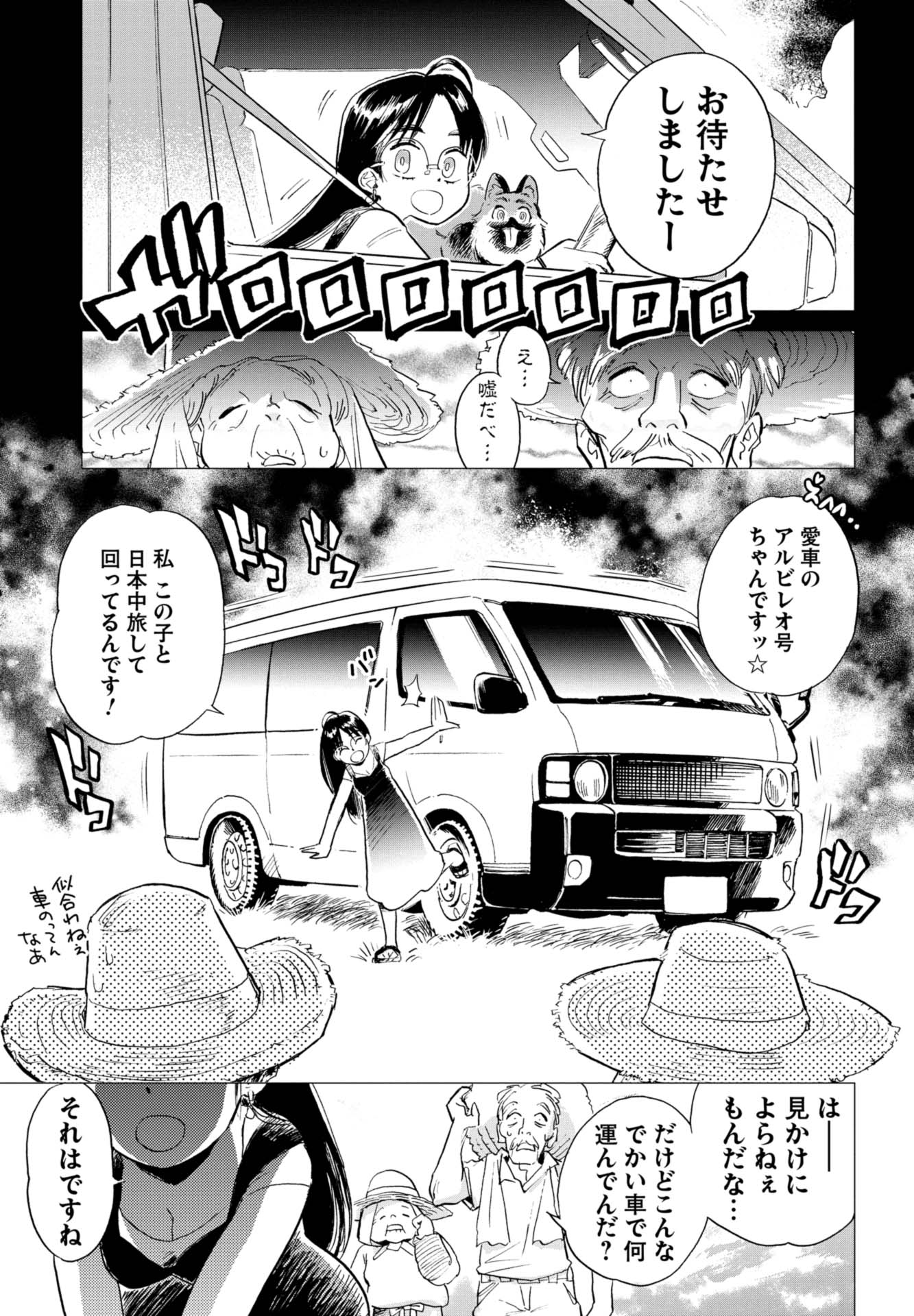 仕事のことで悩む望月雲平は、自由気ままに秘密基地のような車で旅をする絵本作家の渚つぐみと出会い、彼女を追いかけ車で旅しながら、自分について考え、成長していきます。読んだらきっと旅をしたくなる、 大人がワクワクするロードコミックです。