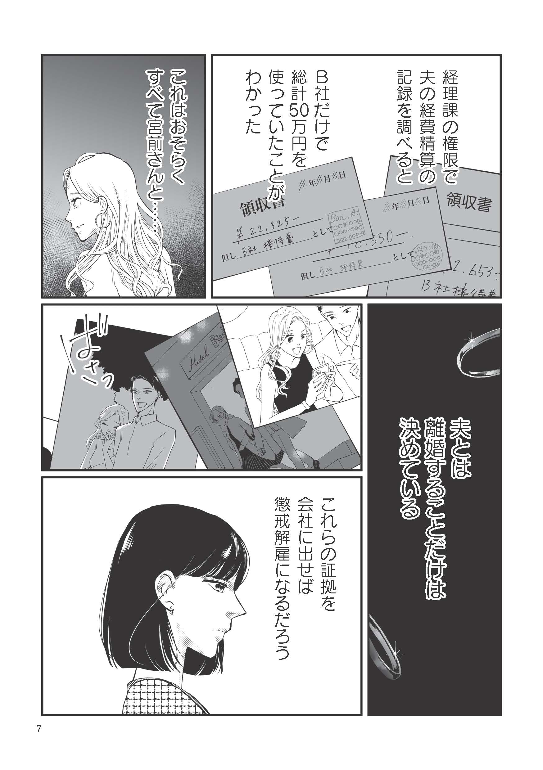 本作は、社内結婚をした日下部唯が、夫の徹が経費を使って社内の女性社員と不倫をしていることに気づき、夫から全てを奪うために証拠を追い求めるサレ妻の復讐ストーリーです。
