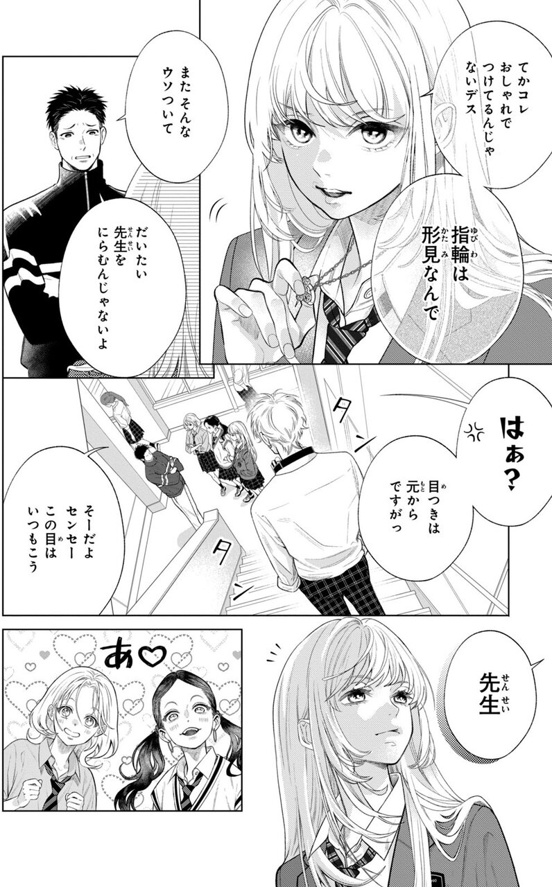 気むずかしい&好戦的な表情がとてもかわいい(本作の表紙も必見ですよ、かなり本気のしかめっ面!)。ラフに着崩した制服に、オシャレな女友達。向かうところ敵なし、青春真っ盛りのつよつよ女子高生のように見えますが、彼女の心には絶対に消えない、忘れられない過去があります。