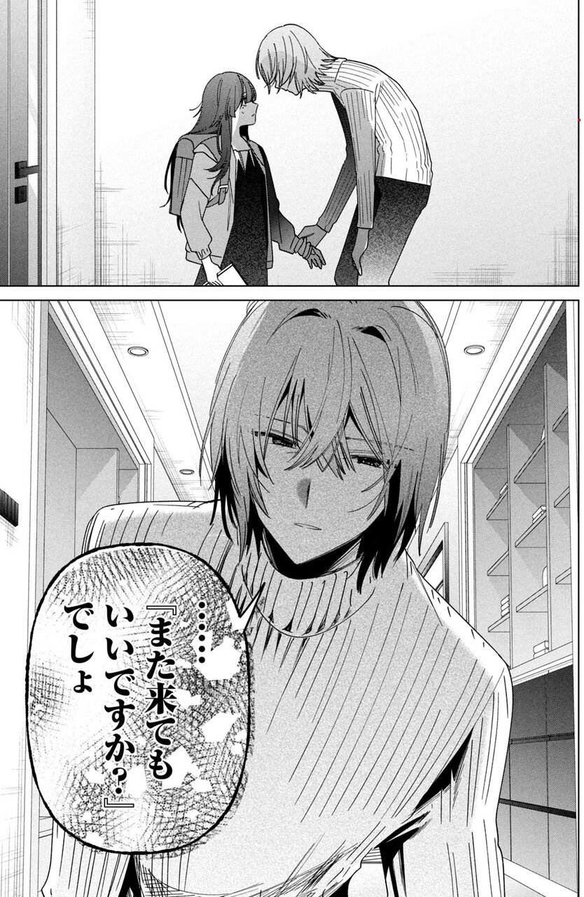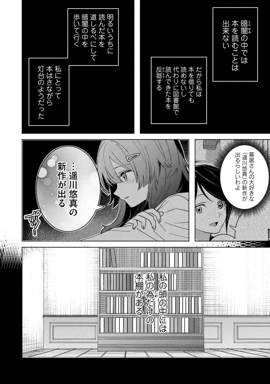 遥川悠真を名乗る男は、その本を持って死なれると、マスコミが騒いで、小説が販売停止になったりしたら困るからやめろと言う。本を自分に渡せば、死んでもいいとさえ言う。それが“彼なりの優しさ”なのか、“ただの人でなし”なのかさえ分からない。梓に帰るところがないのを察すると、男は「うちに来るか?」と問う。それは地獄に差し込む光なのか、さらなる闇なのか、梓は何もわからないまま、彼に付いていく。