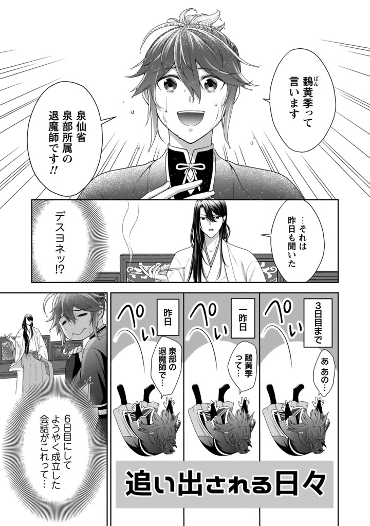 本作は、落ちこぼれの新米退魔師・鷭黄季(ばんおうき)が、美貌の退魔師・氷柳(ひりゅう)と出会い、戦うことを望まぬ氷柳に代わって妖怪に立ち向かおうとする「中華バディファンタジー」です。