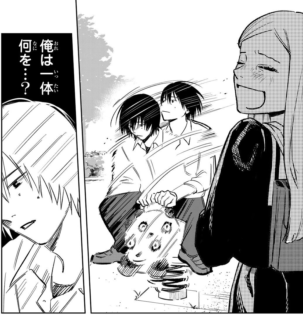 パンダの遊具に乗る倉木くんを見て、ゲラが発動する春野さん。