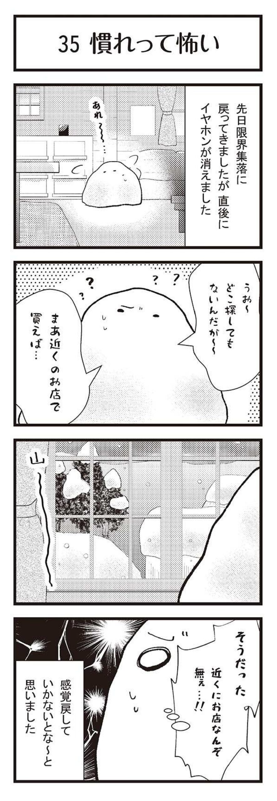 「限界集落」とは、「家を継ぐ若者が流出して、社会的な共同作業が困難になった共同体」を指す言葉です。本作は、限界集落に住む著者のうどん粉さんが、すれ違う人は全員親戚、バスは1日1本の、地元の限界集落の生活をハートフルに綴った4コマ漫画です。