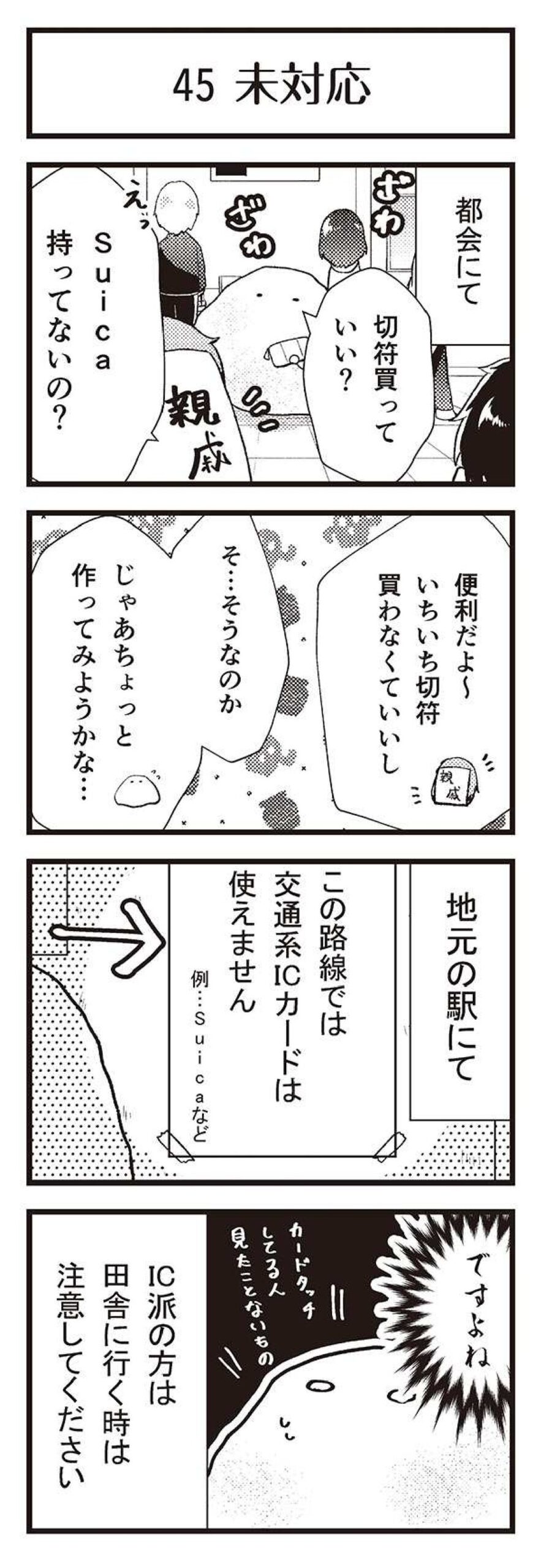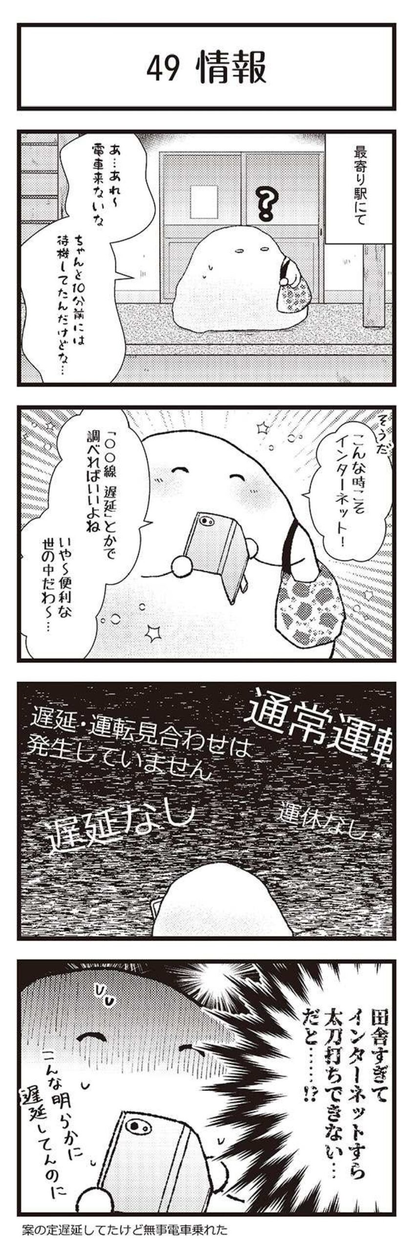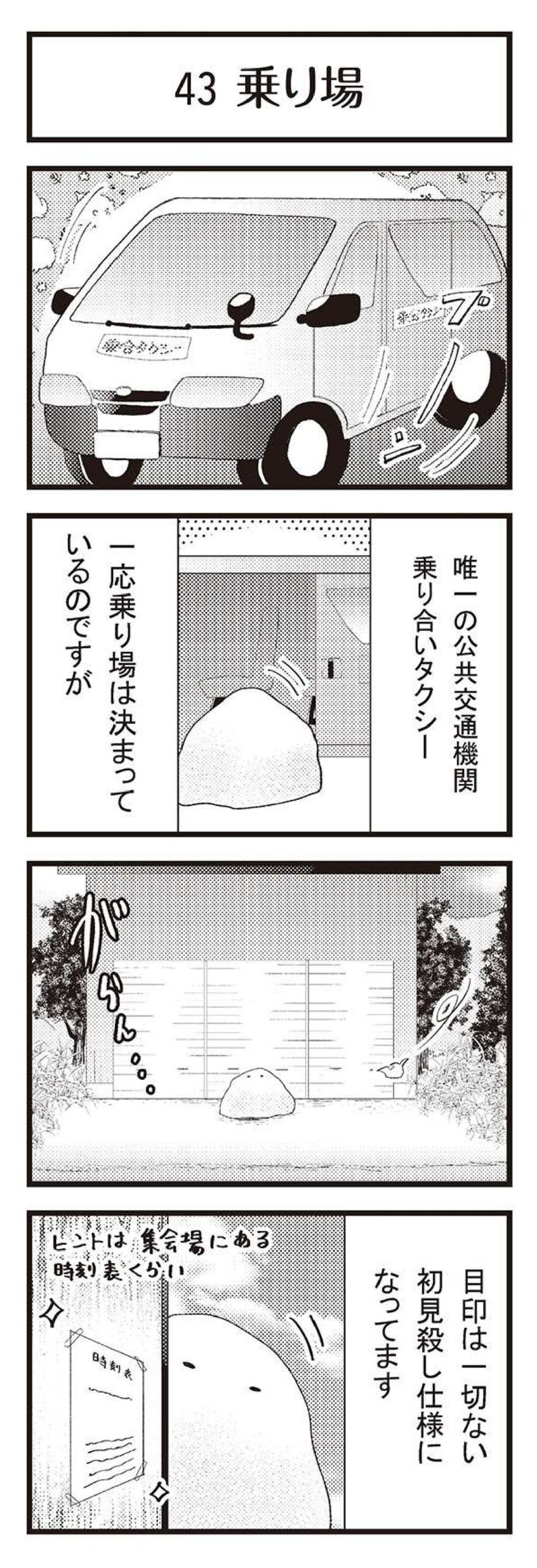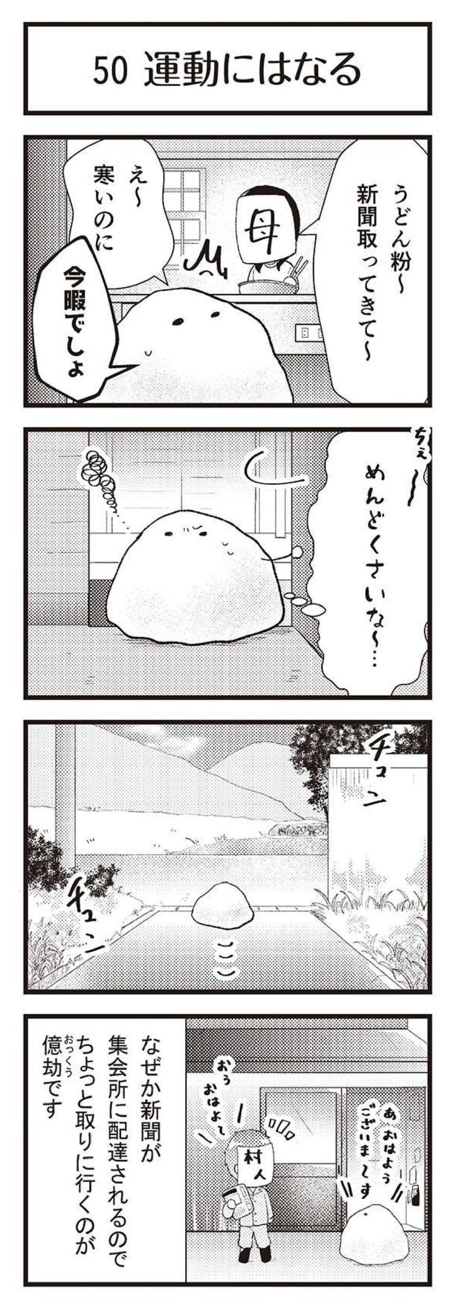 「限界集落」とは、「家を継ぐ若者が流出して、社会的な共同作業が困難になった共同体」を指す言葉です。本作は、限界集落に住む著者のうどん粉さんが、すれ違う人は全員親戚、バスは1日1本の、地元の限界集落の生活をハートフルに綴った4コマ漫画です。