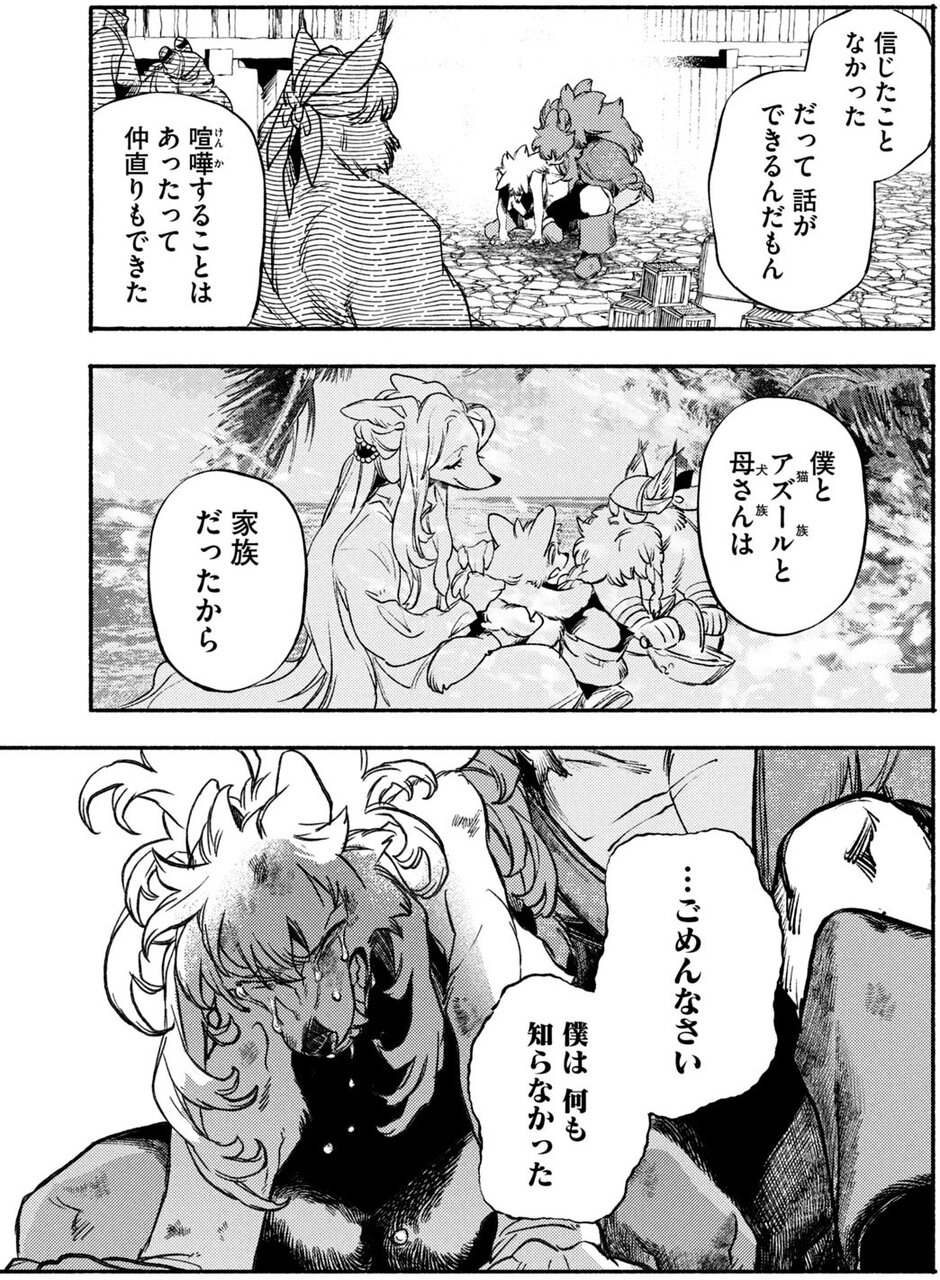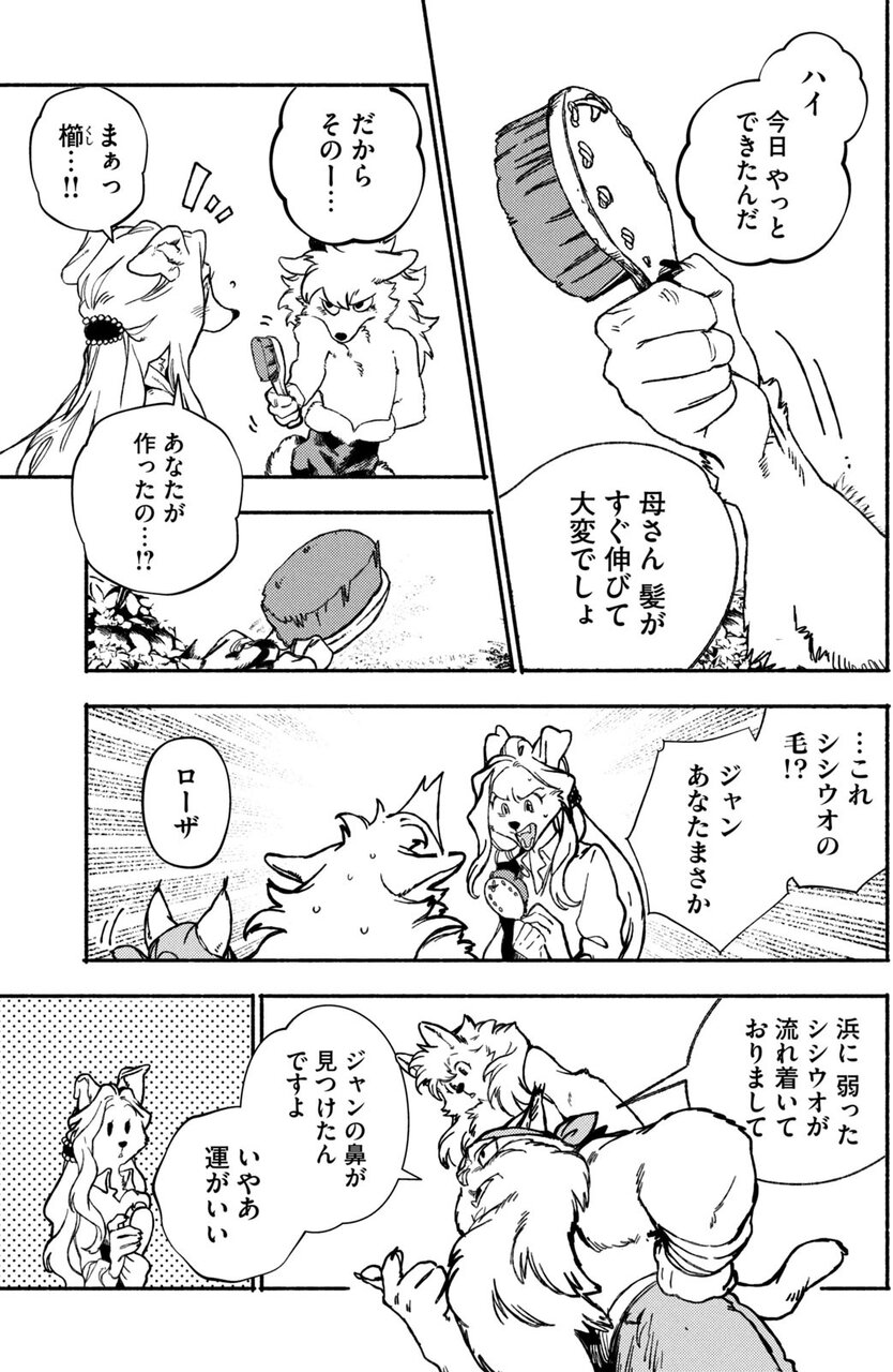 物語の主人公・ジャンは犬族の少年でありながら、イースではなく海で生まれ、猫のアズールに育てられ、母ローザとともに孤島で穏やかな日々を送っていました。