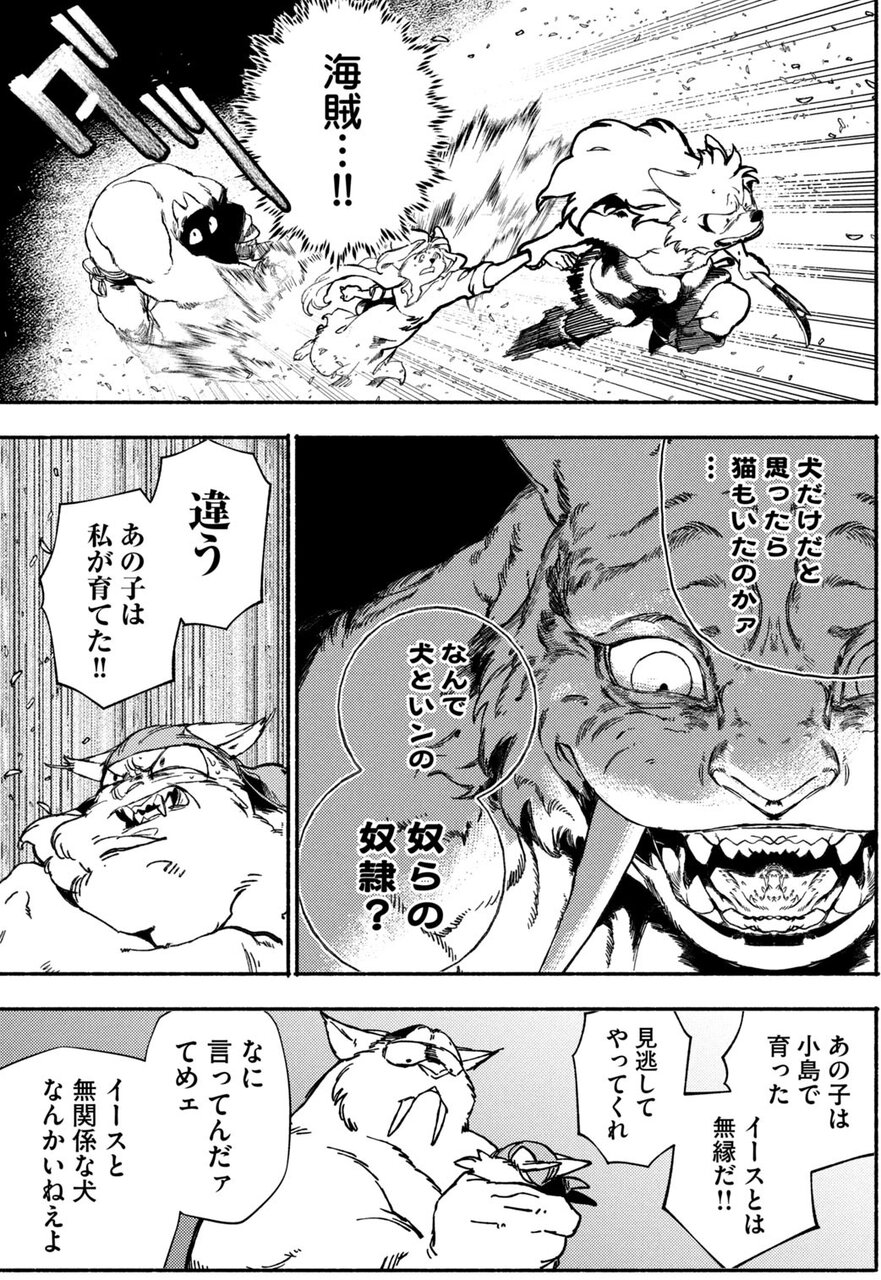 たった一つの大陸での共存を断念した末、長きにわたり続いた戦いは、群れを統率する力に長けた犬族の勝利に終わります。彼らは大陸に王国「イース」を築き、単独行動を好む猫族は“海賊”として、海に点在する小島を拠点に生きる道を選ばざるを得ませんでした。