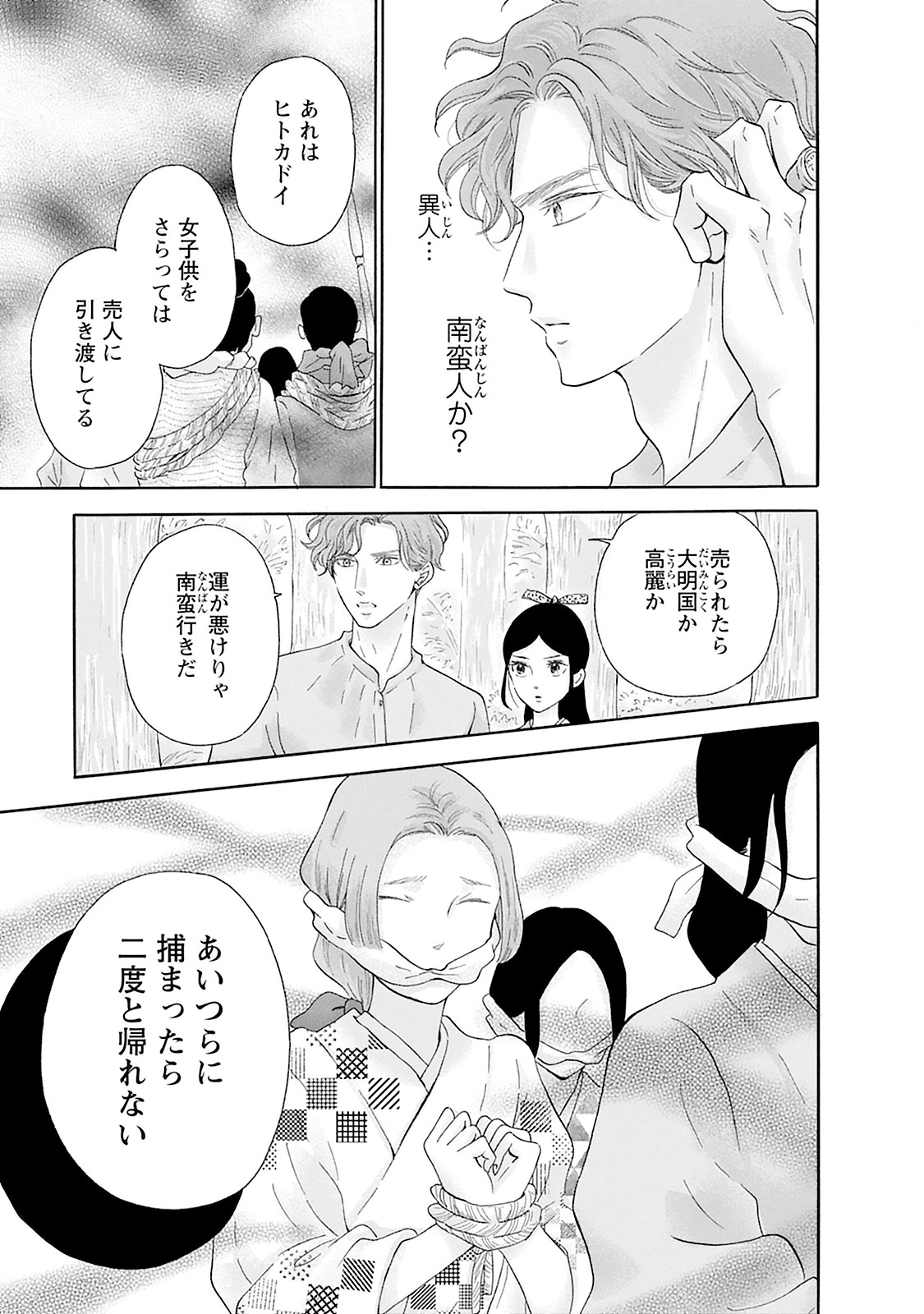 本作は、著・鈴木望の歴史ラブストーリーです。奴隷としてマカオへ向かう貿易船の女性たちの様子を、史実を織り交ぜて語ります。