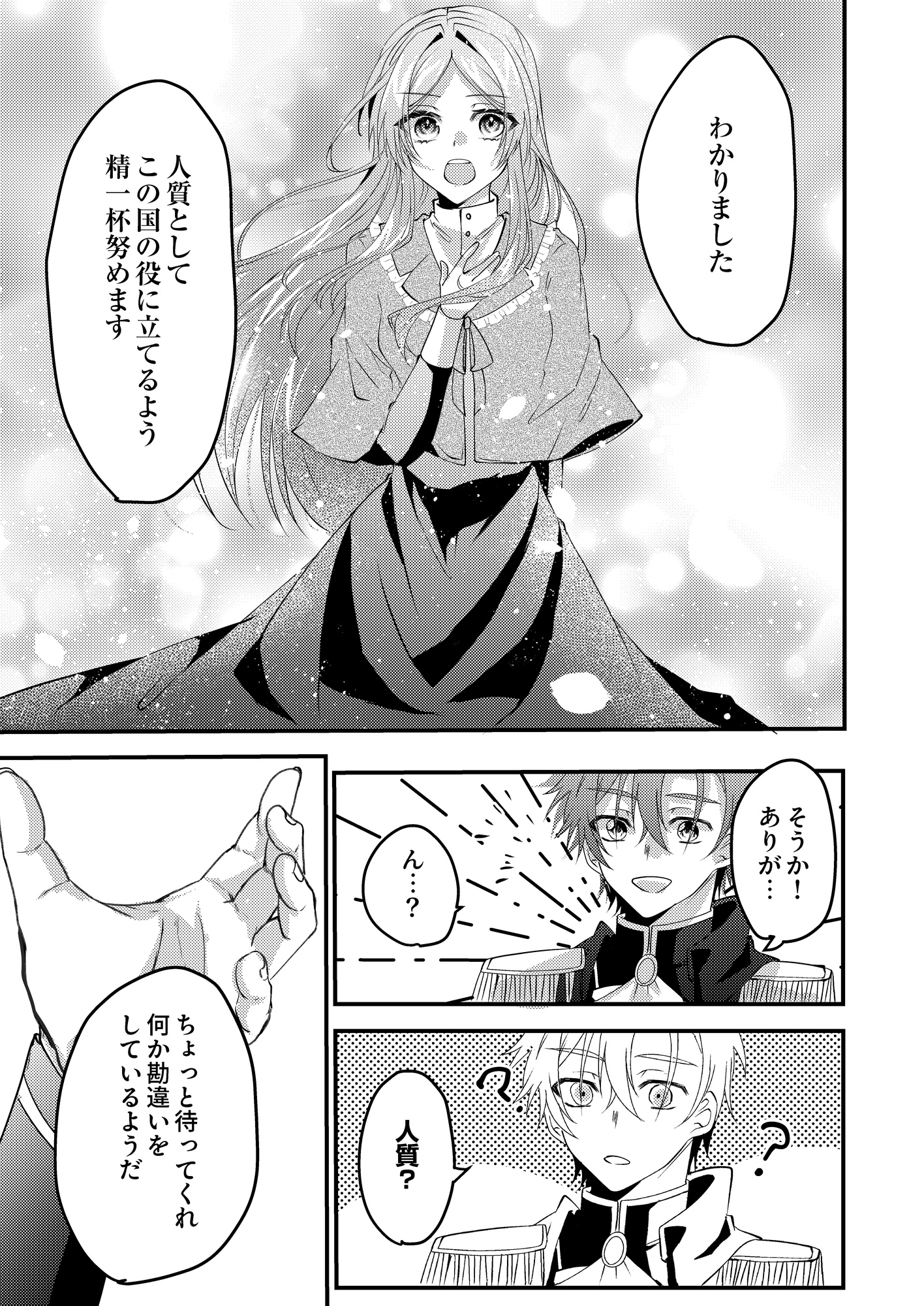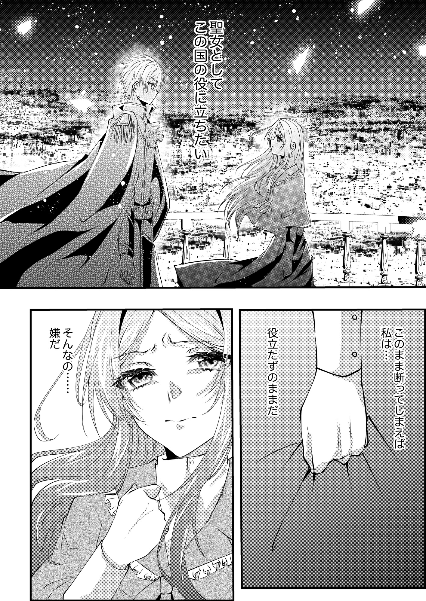 本作は、白蓮翠・作画、香散見羽弥・原作のファンタジックシンデレラストーリー。虐げられていた聖女が人質としてやってきた隣国の大公と結婚することに…?