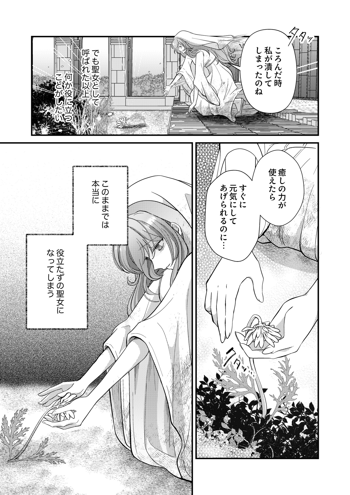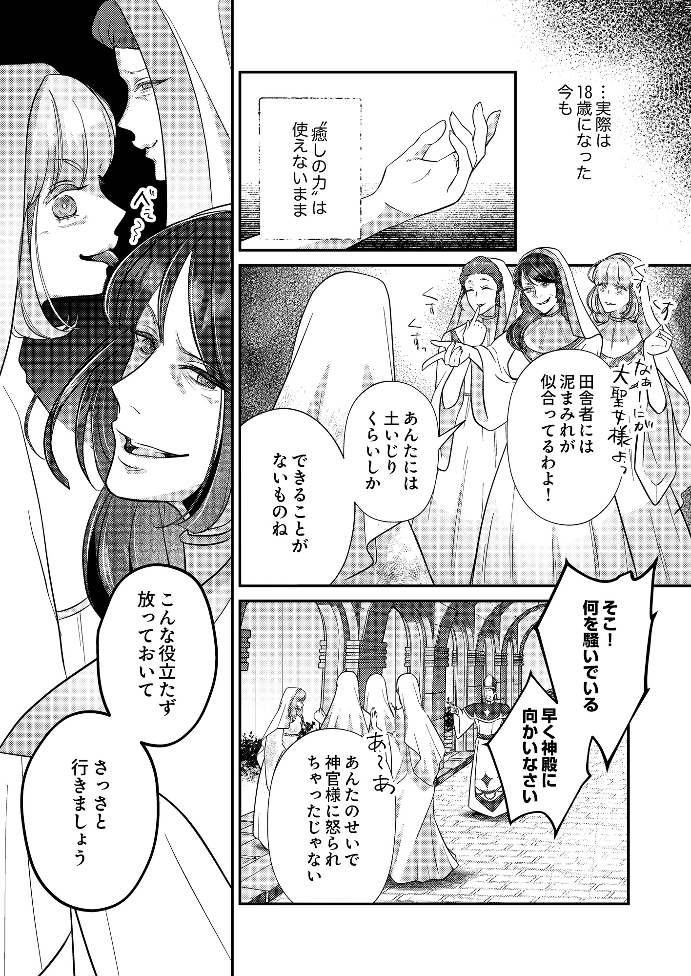 本作は、漫画・小駒みち、原作・綾束乙、キャラクター原案・甘塩コメコの王道ラブファンタジーです。純真無垢な聖女と人食いと恐れられる辺境の魔霊伯爵の恋愛にハラハラ!