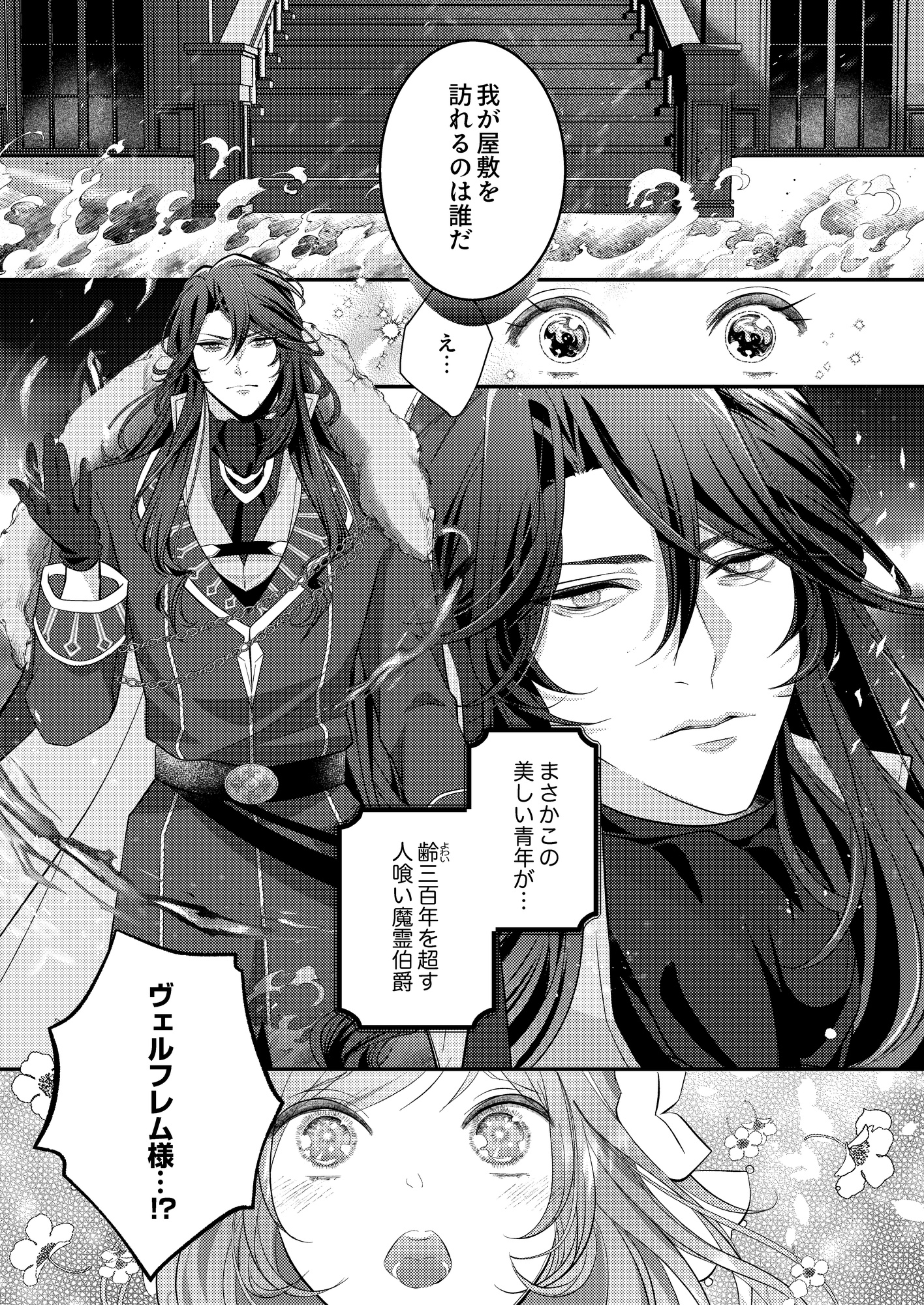 本作は、漫画・小駒みち、原作・綾束乙、キャラクター原案・甘塩コメコの王道ラブファンタジーです。純真無垢な聖女と人食いと恐れられる辺境の魔霊伯爵の恋愛にハラハラ!