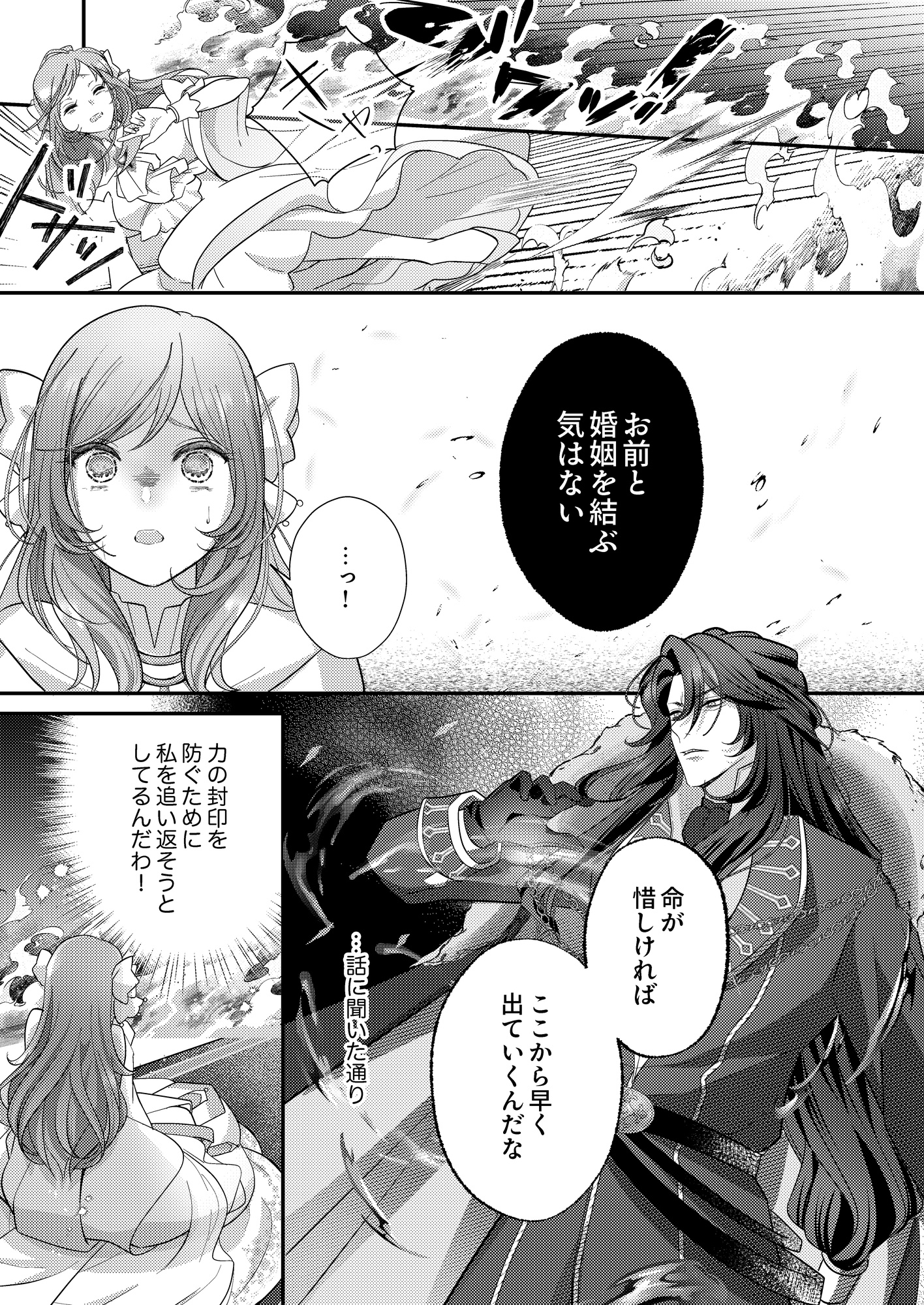 本作は、漫画・小駒みち、原作・綾束乙、キャラクター原案・甘塩コメコの王道ラブファンタジーです。純真無垢な聖女と人食いと恐れられる辺境の魔霊伯爵の恋愛にハラハラ!