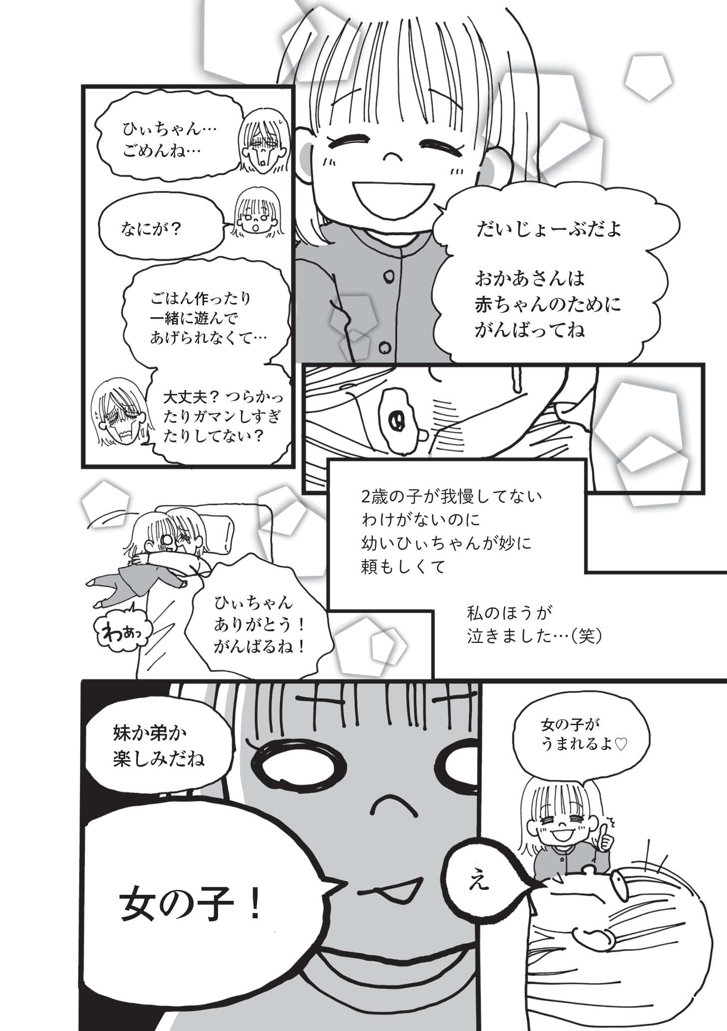 本作は、胎内記憶のある長女・ひぃちゃんが話す、お腹の中の記憶や、お腹の中に入る前のお空の記憶を描いた胎内記憶マンガです。