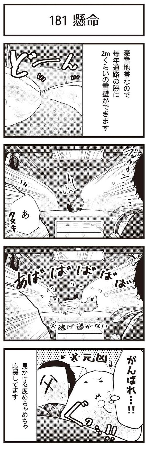 「限界集落」とは、「家を継ぐ若者が流出して、社会的な共同作業が困難になった共同体」を指す言葉です。本作は、限界集落に住む著者のうどん粉さんが、すれ違う人は全員親戚、バスは1日1本の、地元の限界集落の生活をハートフルに綴った4コマ漫画です。
