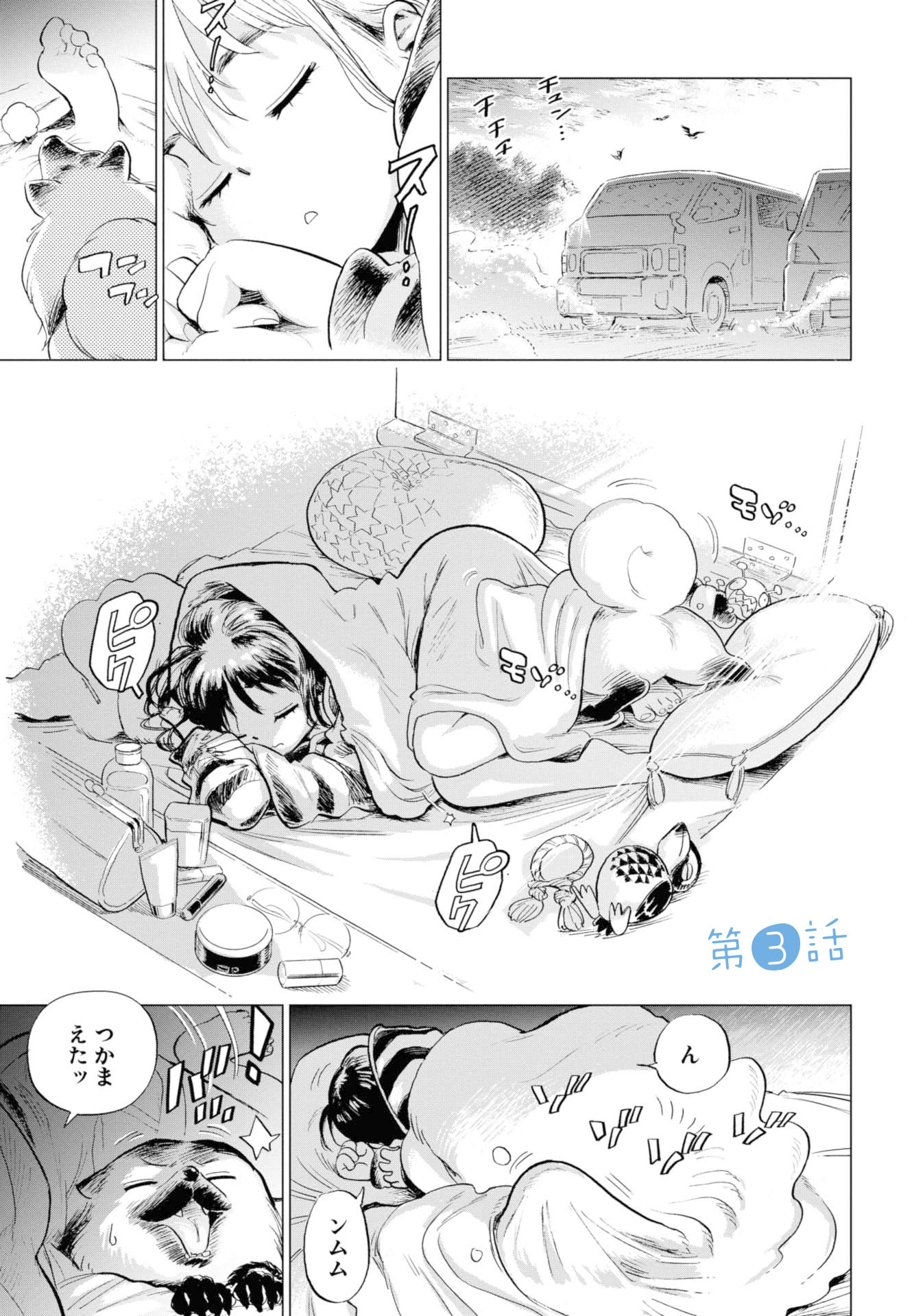 仕事のことで悩む望月雲平は、自由気ままに秘密基地のような車で旅をする絵本作家の渚つぐみと出会い、彼女を追いかけ車で旅しながら、自分について考え、成長していきます。読んだらきっと旅をしたくなる、 大人がワクワクするロードコミックです。