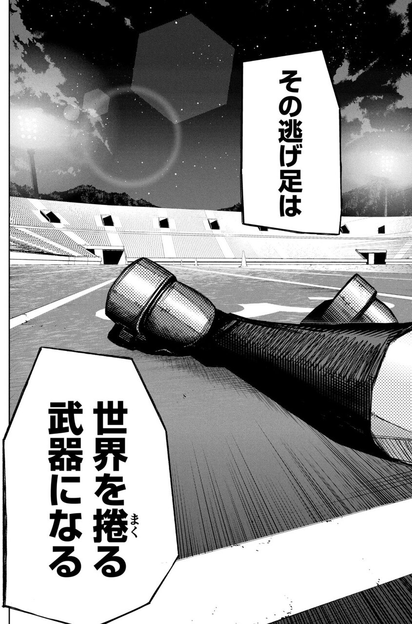 誰にも追いつかれないように逃げるウサギと、そのウサギを追い立てながら逃がそうとする狼塚。陸上競技のトラックと、ヤクザの世界、その両方で2人の逃走劇が繰り広げられる。