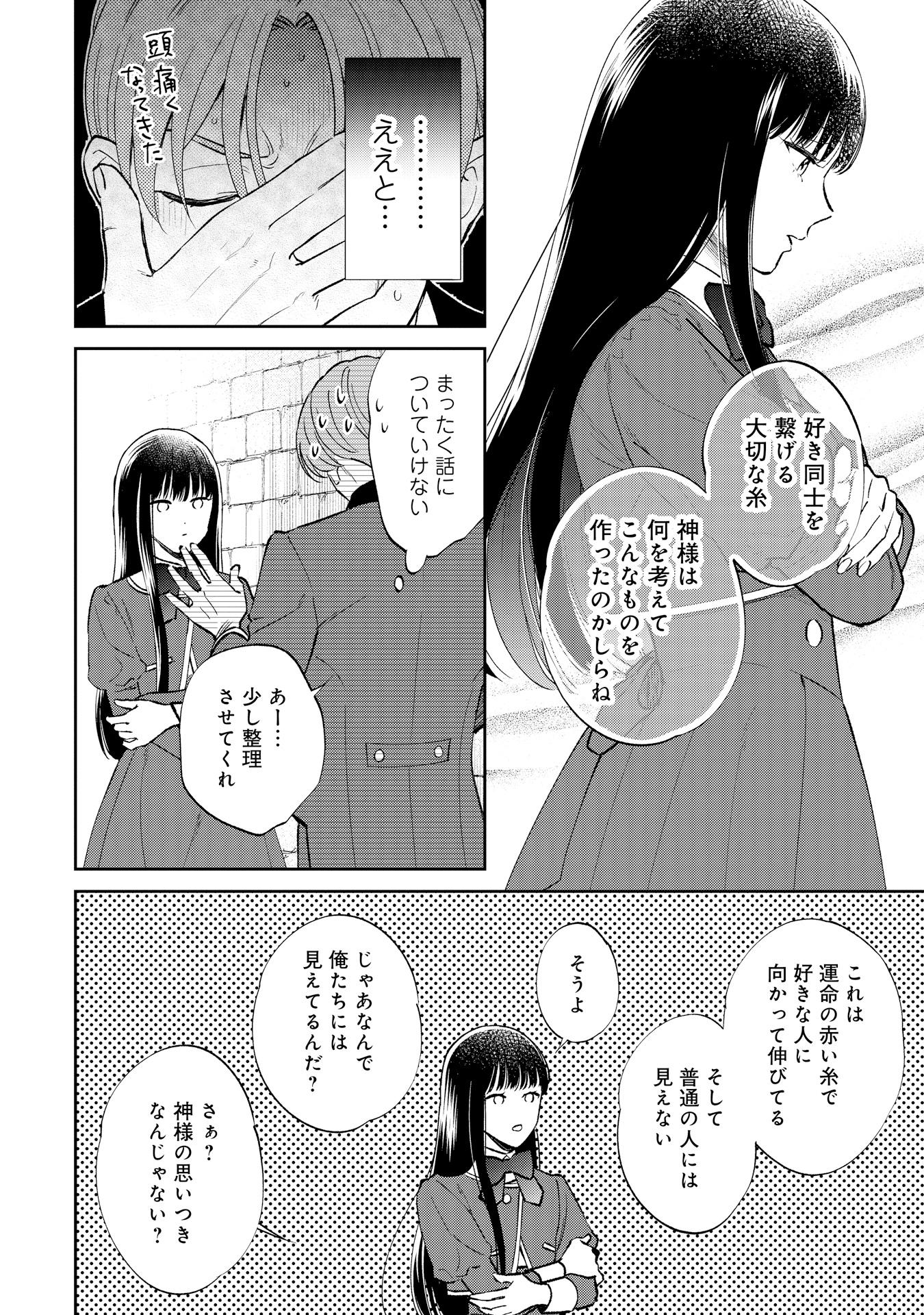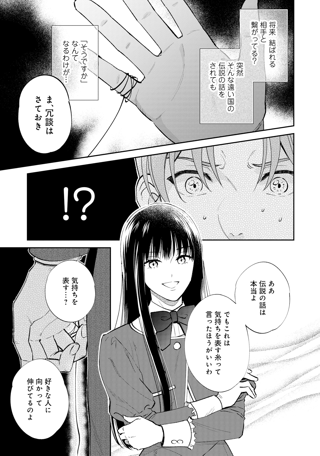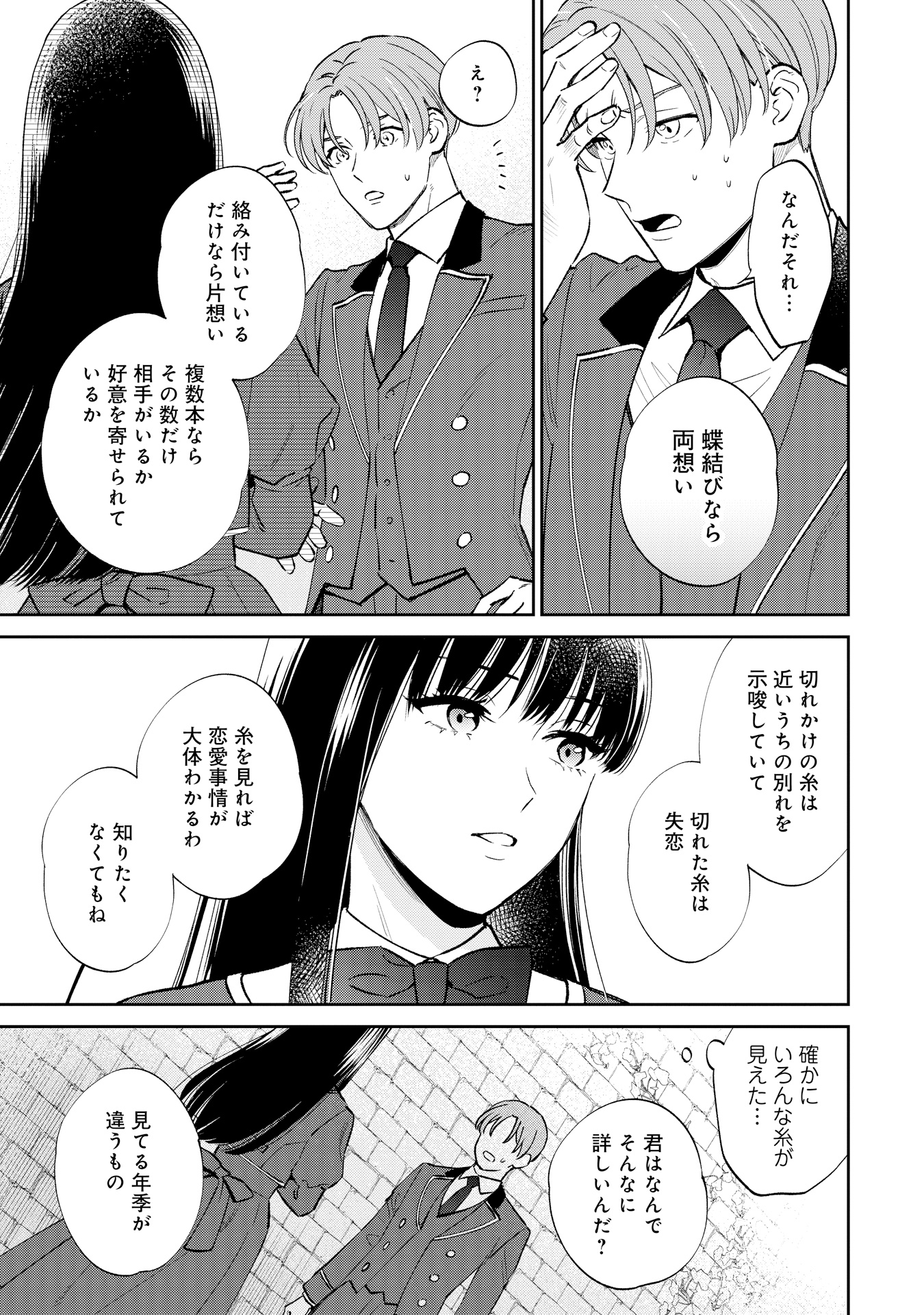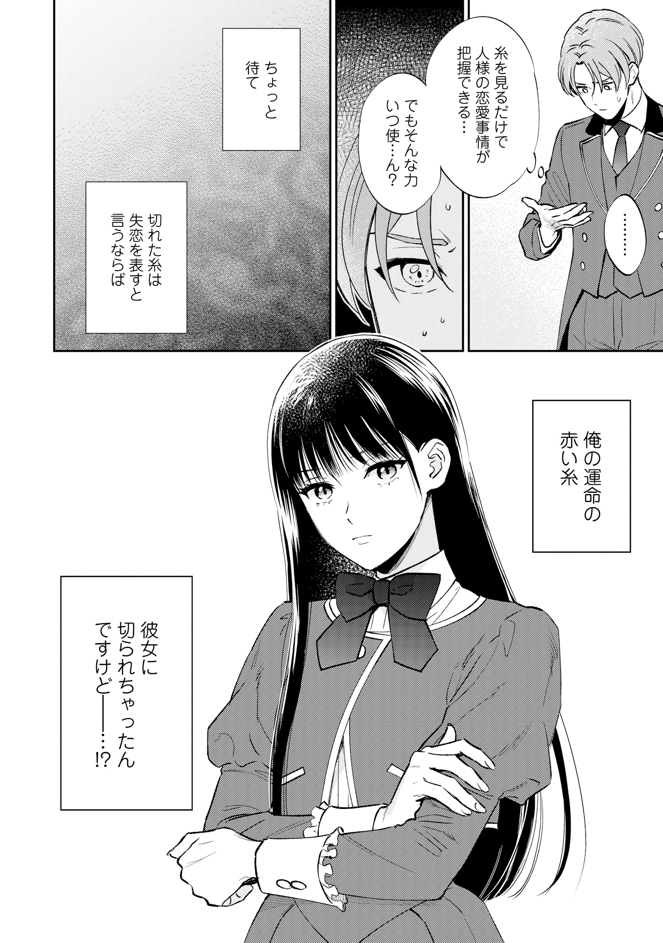 ハワード王立学園に通うアレックス・ヒューバートは、ある日突然、“運命の赤い糸”が見えるようになります。突然の変化に戸惑う中、校内で、赤い糸をハサミで切っている伯爵令嬢のサラ・クローリアに出会います。