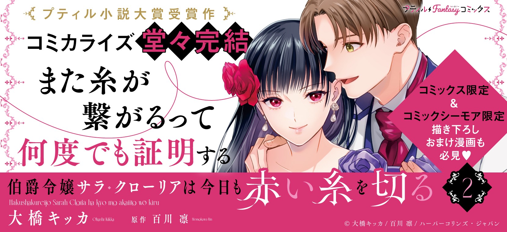 ハーパーコリンズ・ジャパンより、『伯爵令嬢サラ・クローリアは今日も赤い糸を切る』第2巻が3月23日(月)に発売されました。