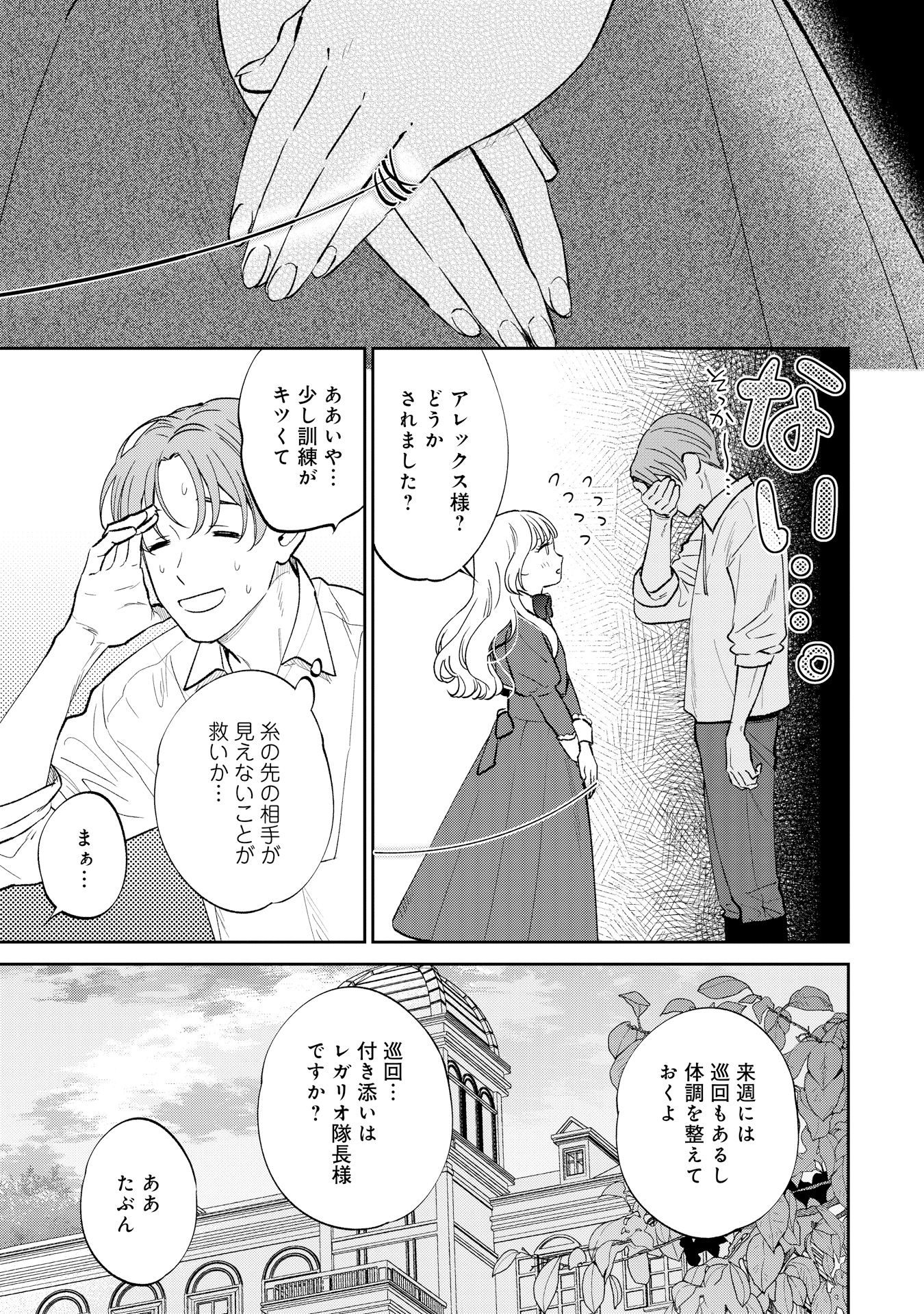 4. 今日も訓練を見学しに来てくれた、可憐な令嬢…彼女の赤い糸は、俺のほうには伸びていない『伯爵令嬢サラ・クローリアは今日も赤い糸を切る』【#15】
