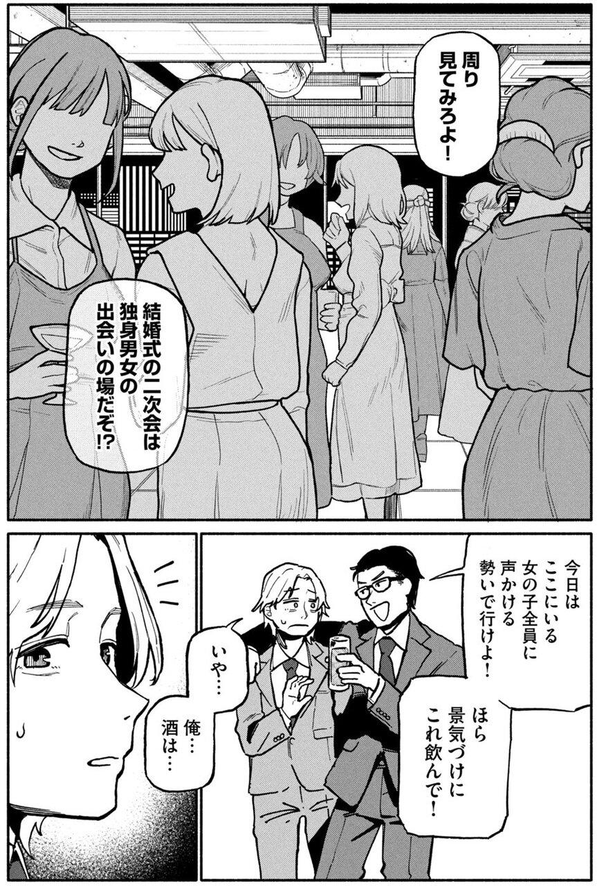 直は新婦側の招待客で、彼女は新郎側だからまったくの他人同士。そんな2人が結婚式の二次会でどんなことを話す? 本作は緩く揺れるような会話が非常にうまい。