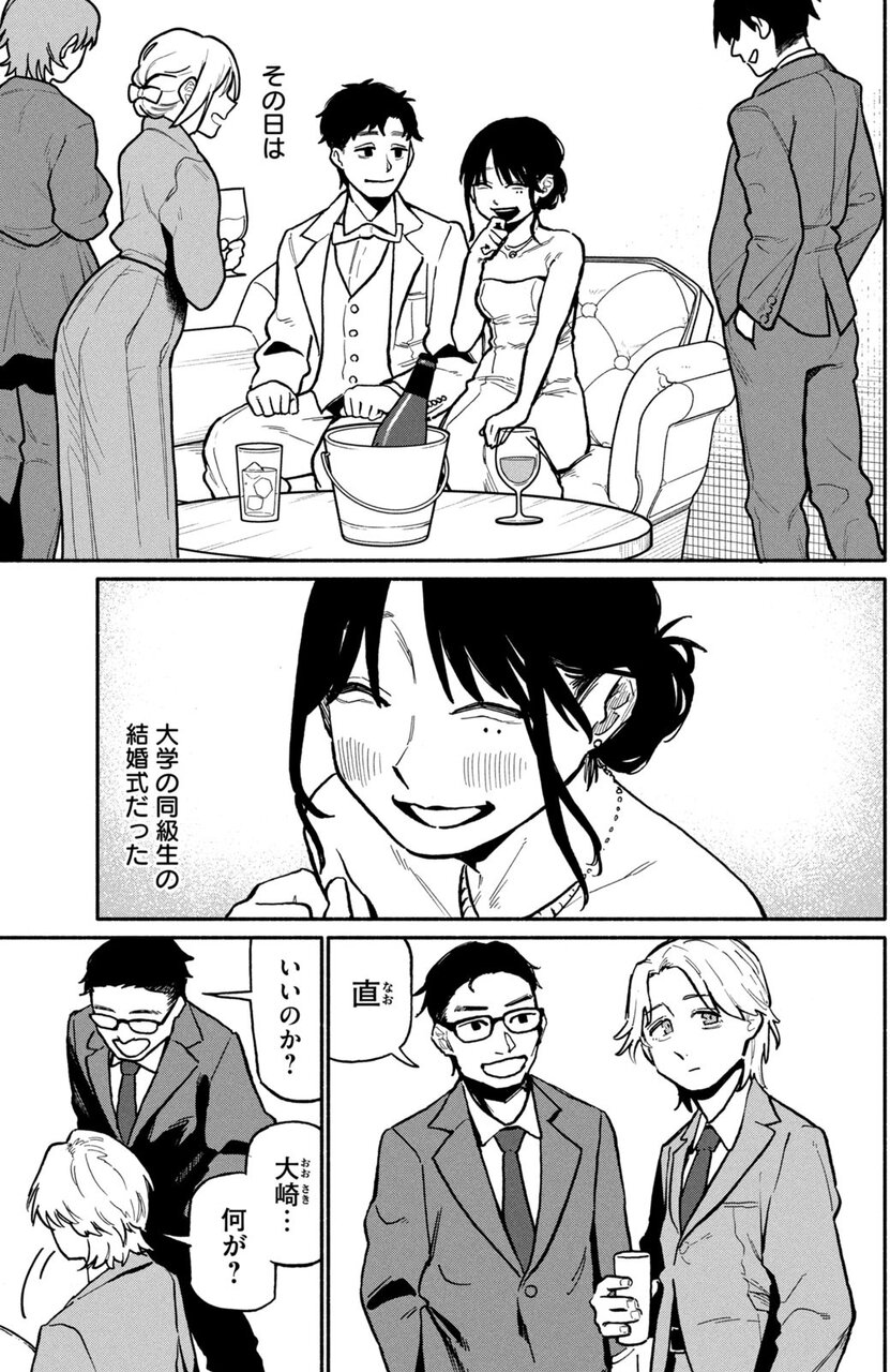 この1ページだけでいろんなことが察せられる。花嫁の左目の下にある2ヵ所のホクロがやけに印象的なのは、もしかしたら主人公の“直”が、そのホクロを「かわいいなあ」と思っていたからなのかもしれない。