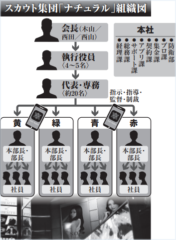 国内最大規模のスカウト集団「ナチュラル」の構成員は、およそ2000人。キャバクラや性風俗店に女性を紹介するルートを、日本全国に持つ。収入源は、彼女たちの稼ぎの15%。年商45億。月収数百万のスカウトはザラ。1000万を超える者もいる。税金? なにそれ? そして、トクリュウ(匿名・流動型犯罪グループ)と呼ばれる犯罪集団である。