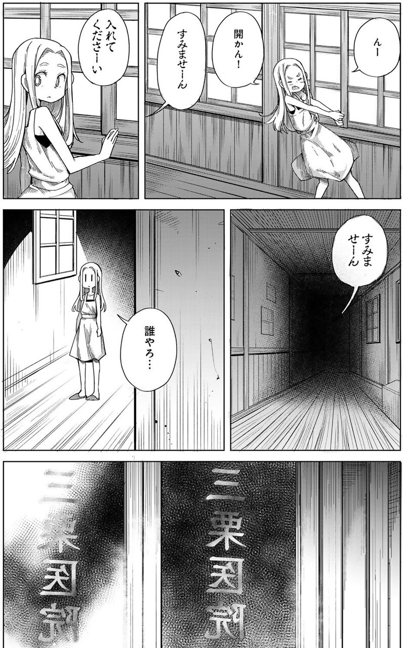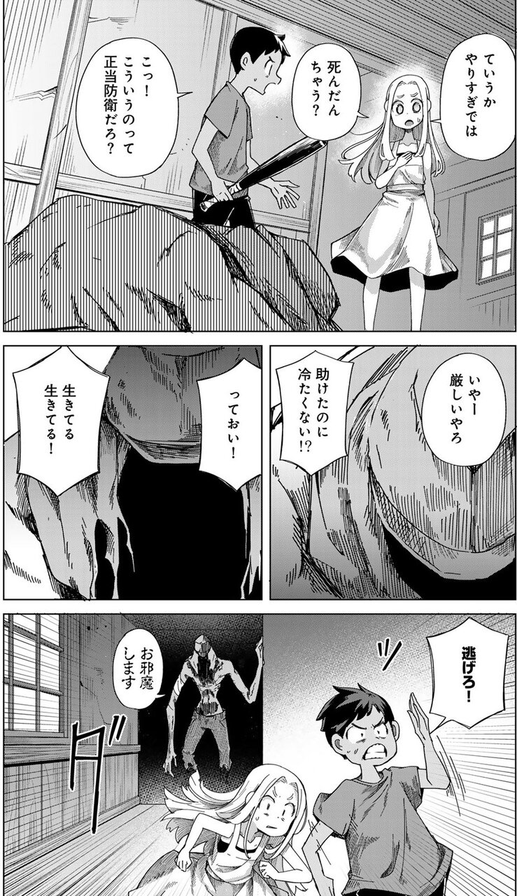 私だったら泡を吹いてぶっ倒れるような場面でもこの調子。三栗村で仲良くなった友達・一富士仁貴(いちふじにたか、こういう不気味なシチュエーションで非常に心強い名前だ)と共に元気よくオカルト大冒険に巻き込まれていく。