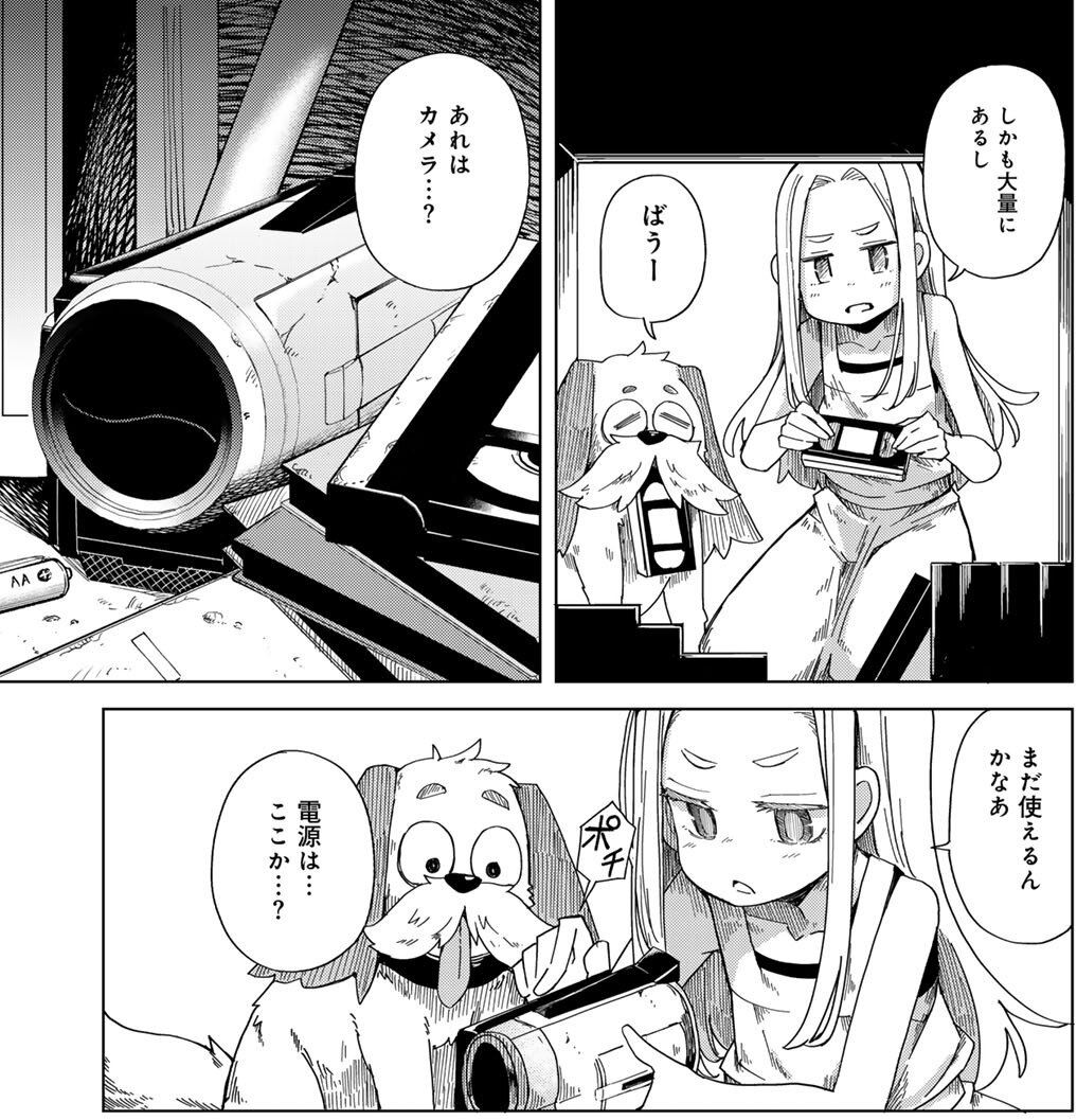 ジュンはモリモリと探索し、ビデオテープと一緒に古いカメラも発見する。