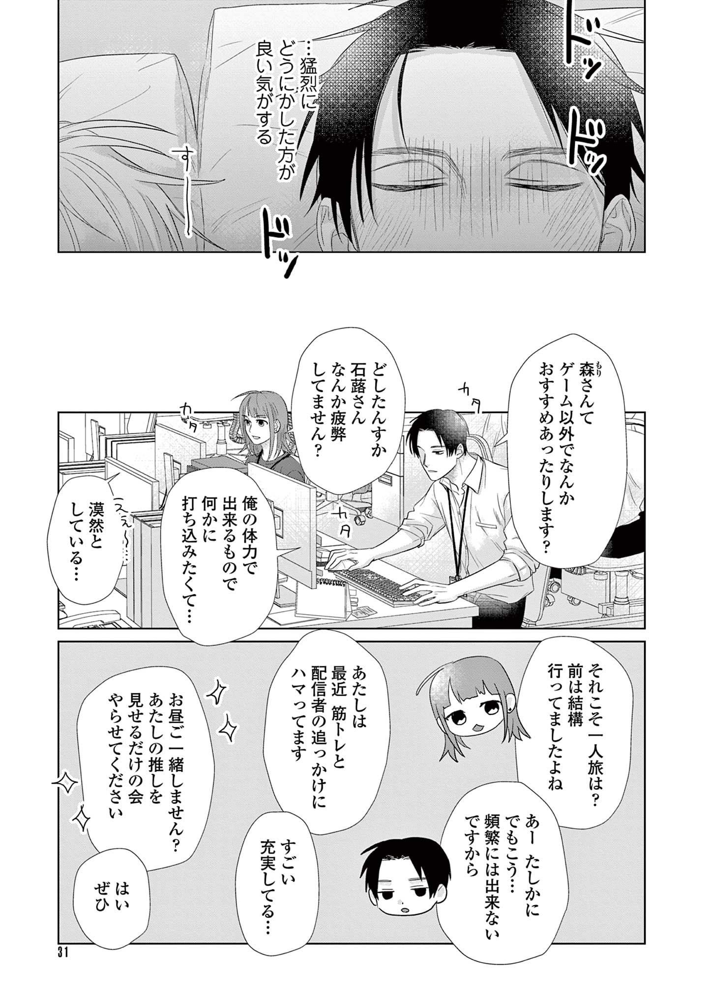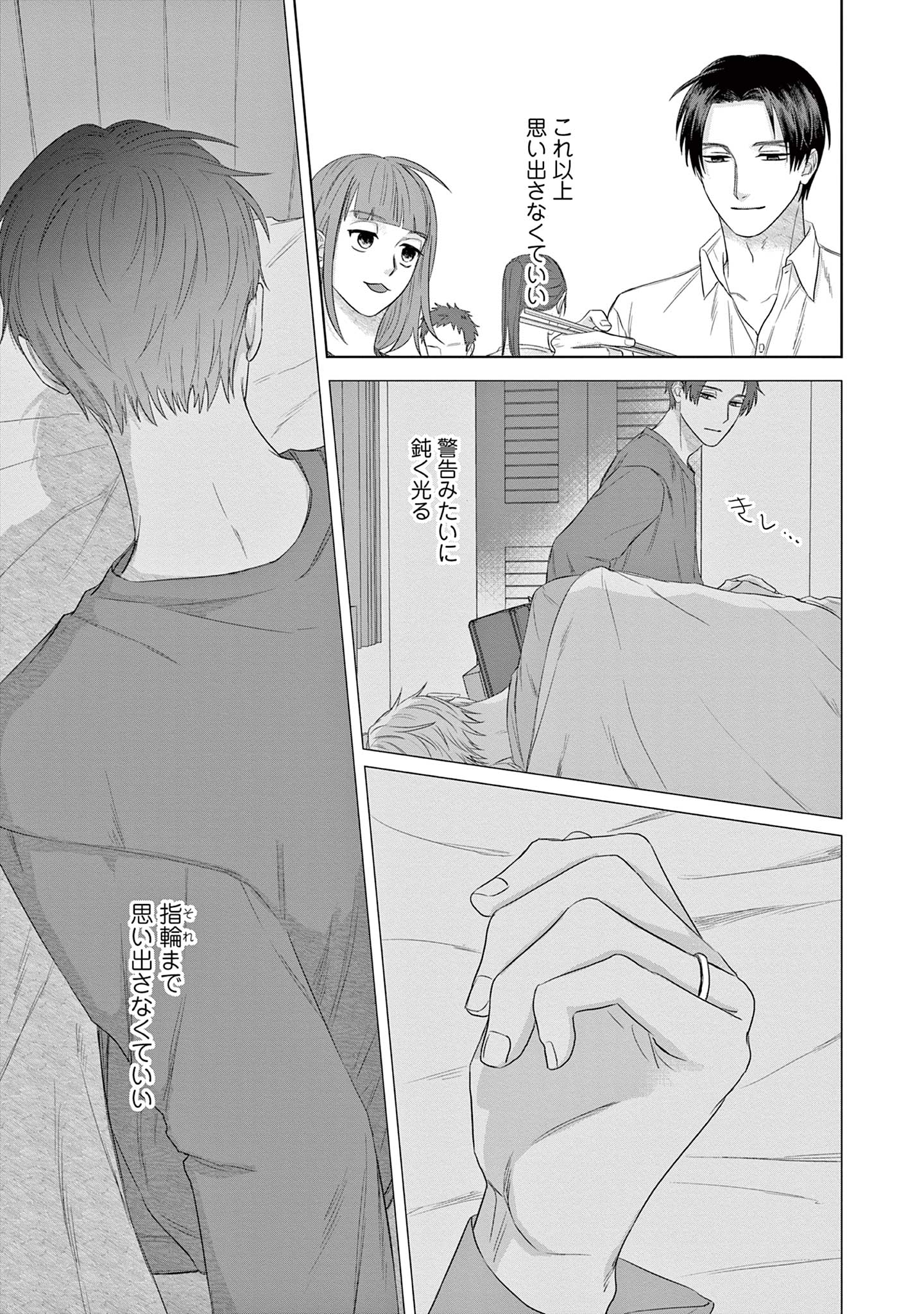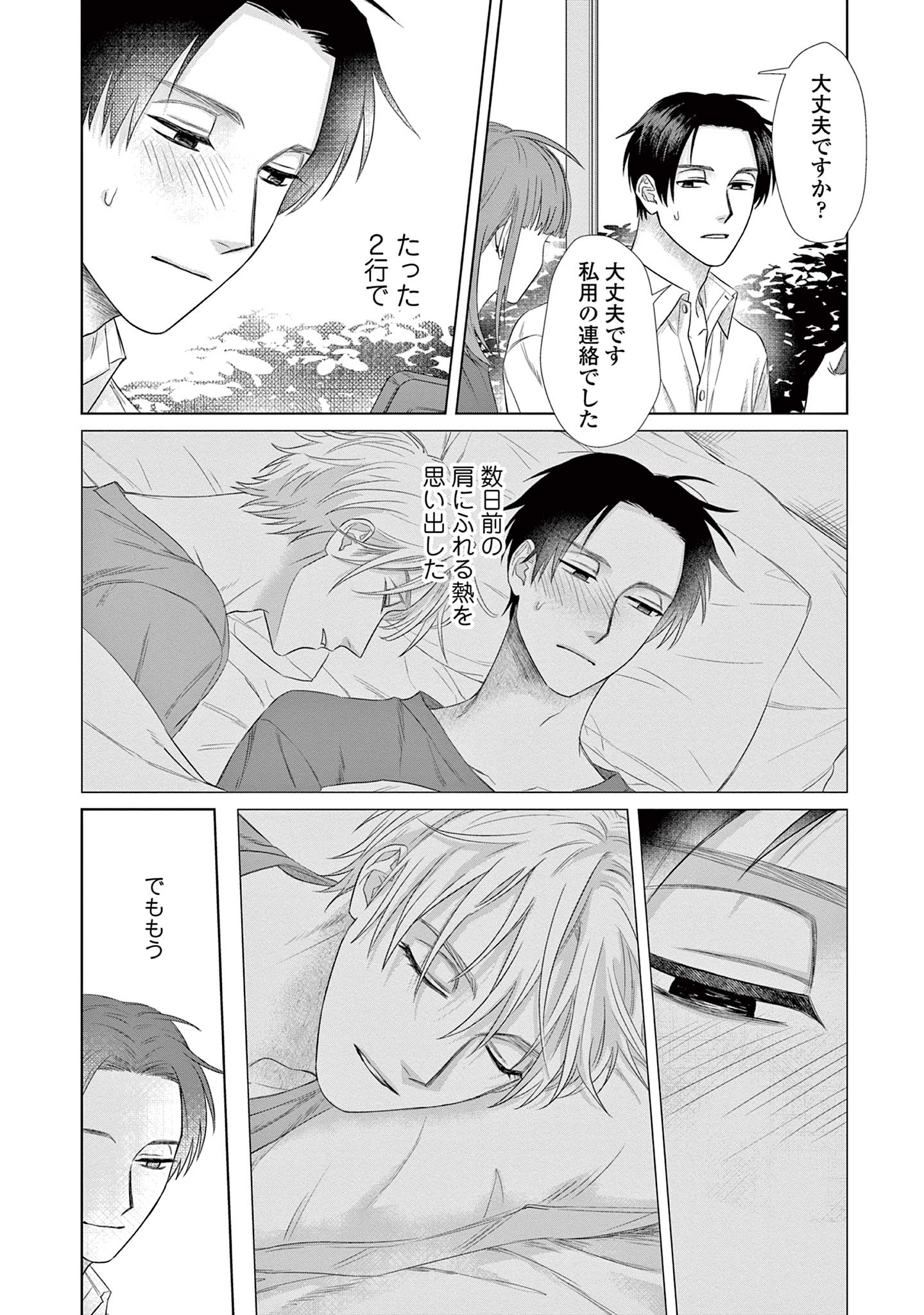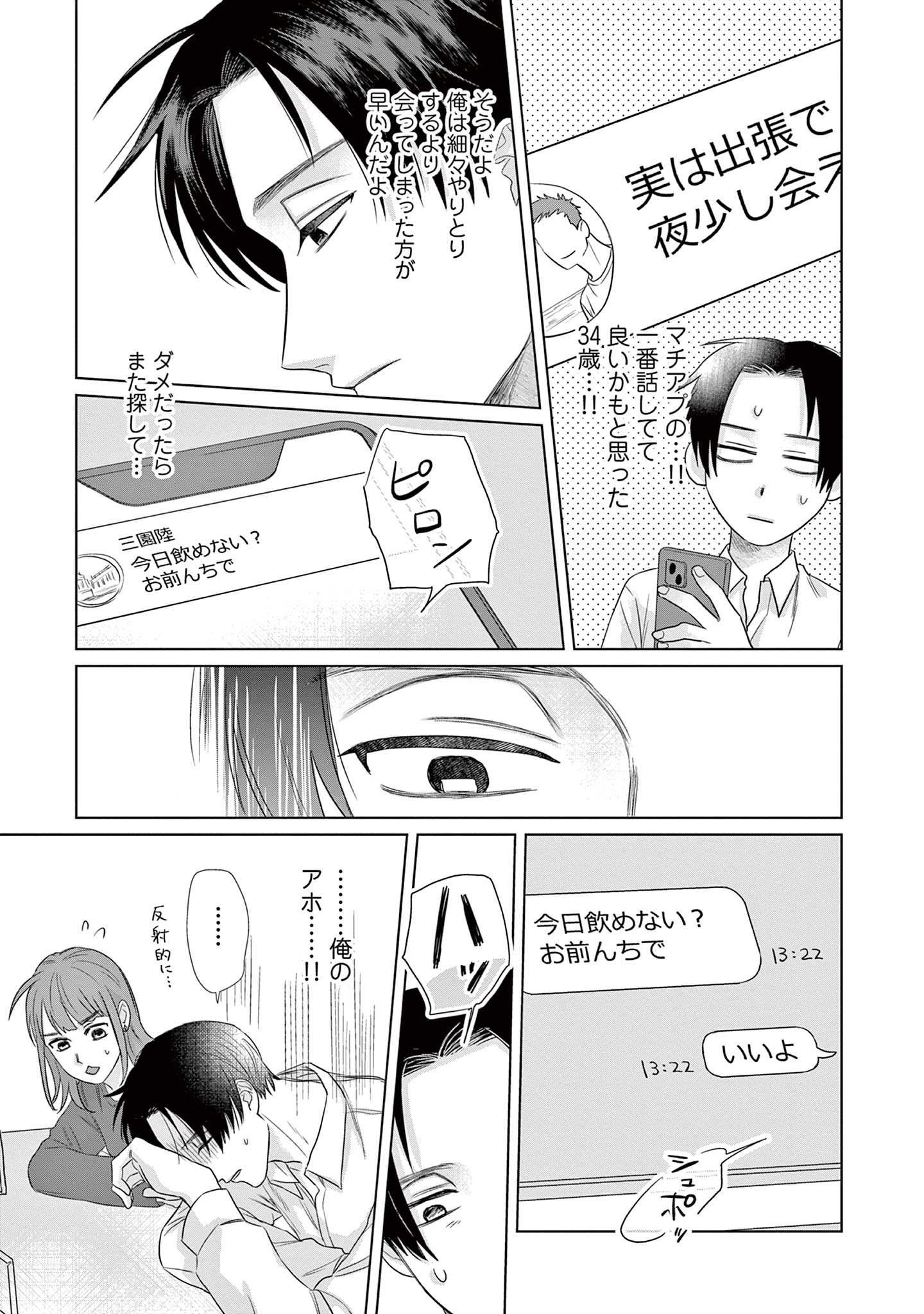 既婚の同期・三園に恋をしている楓は、不毛な恋愛を終わらせるため彼を遠ざけようとしますが、三園は意に介さず、自分自身に関する驚きの事実を告げます。