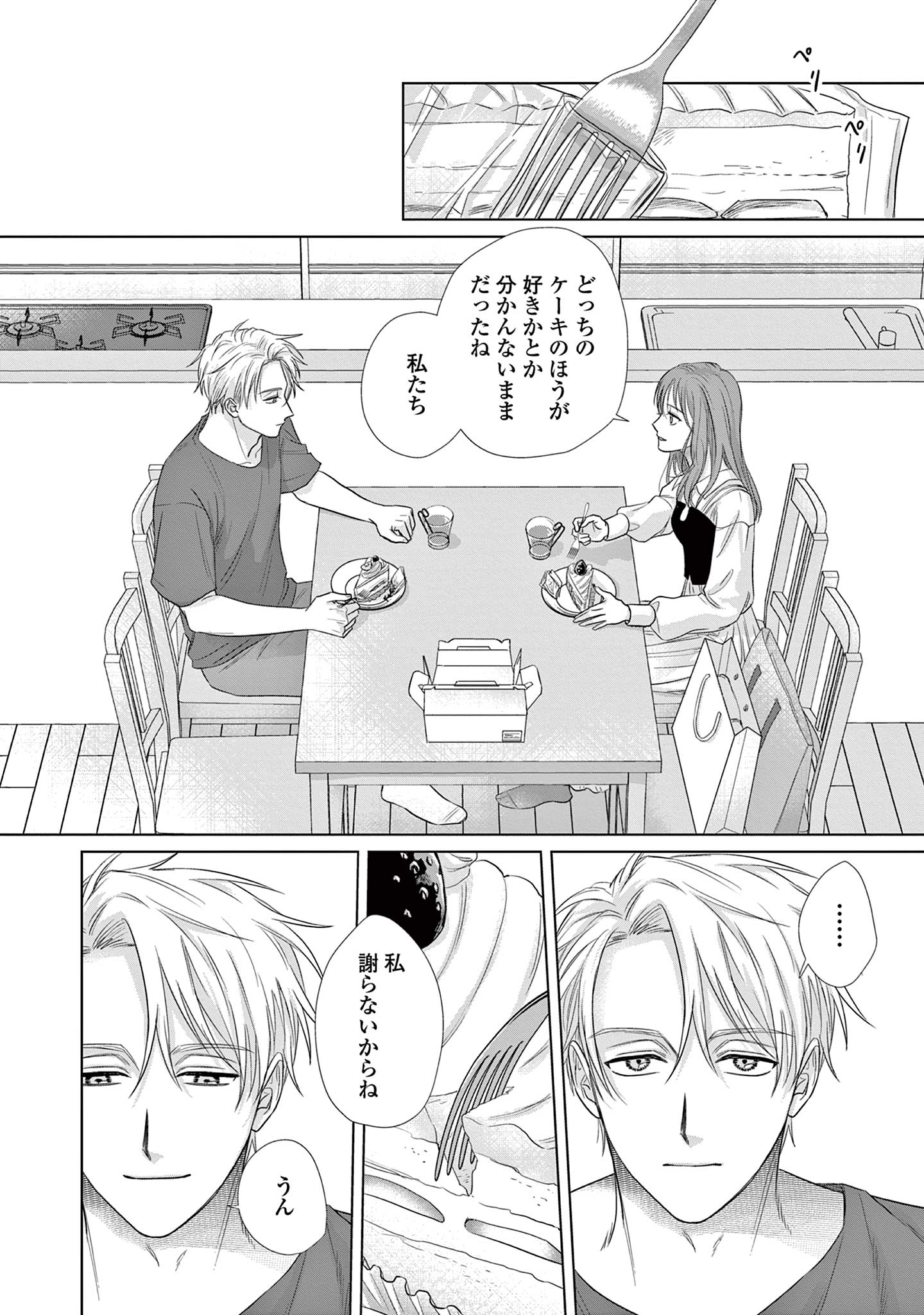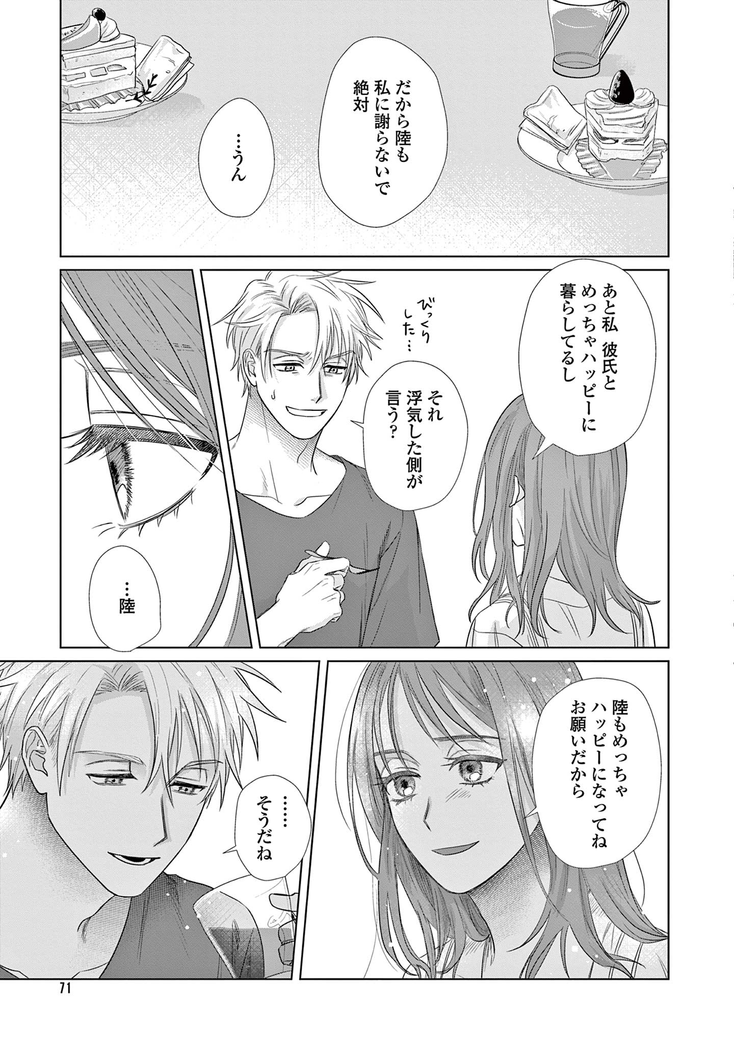 既婚の同期・三園に恋をしている楓は、不毛な恋愛を終わらせるため彼を遠ざけようとしますが、三園は意に介さず、自分自身に関する驚きの事実を告げます。
