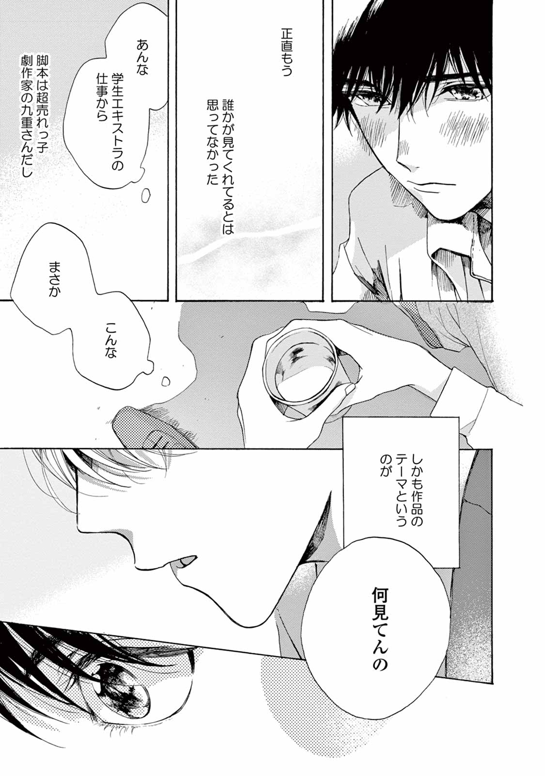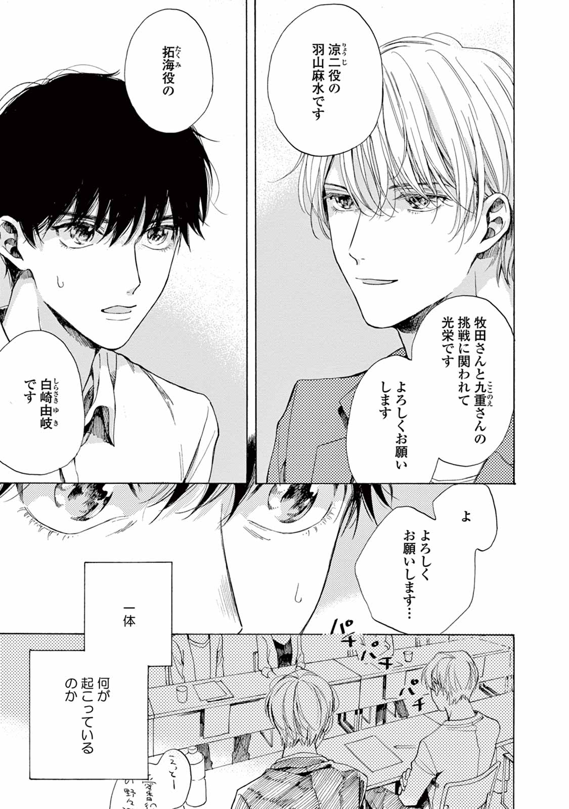 人気BL漫画の実写ドラマで共演することになった超人気俳優の羽山麻水と新人俳優の白崎由岐。芸能界を舞台にドラマの役作りとして始まった二人の「擬似恋愛」が、切なくも真摯な想いを経て、どう変化していくのかーー。