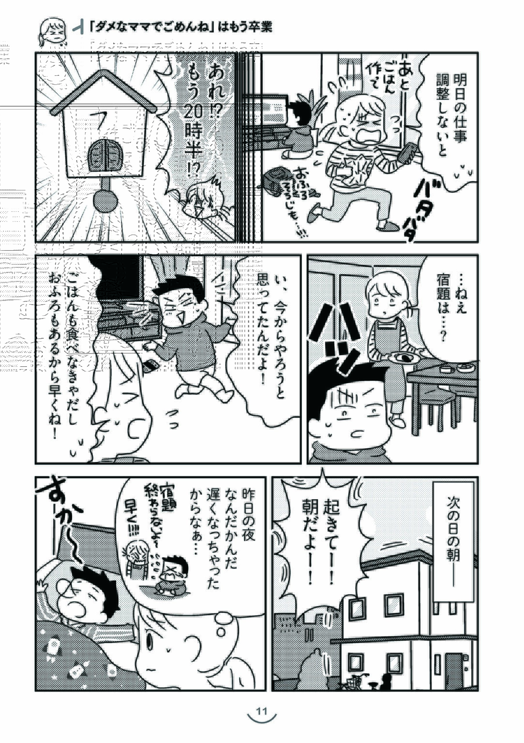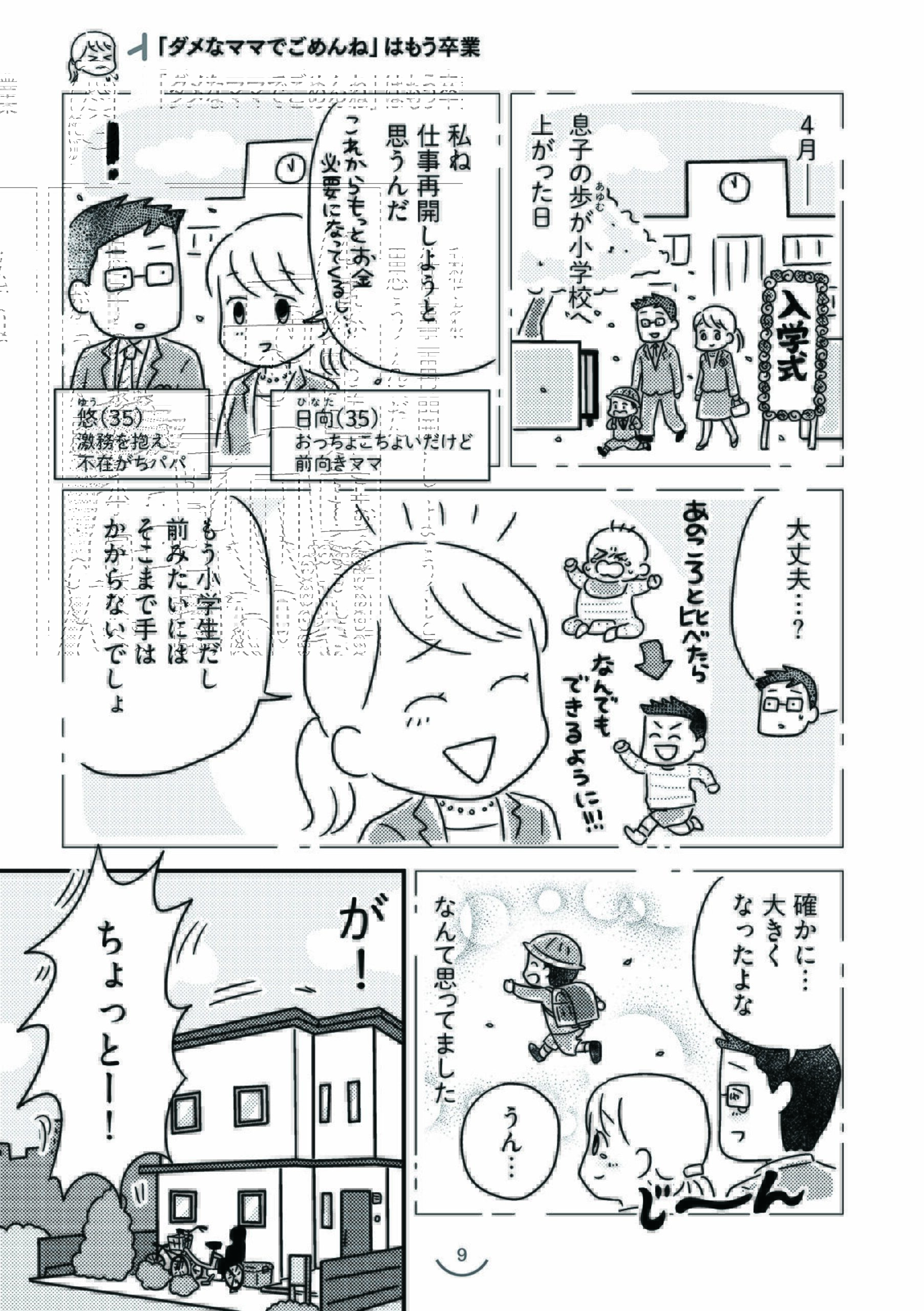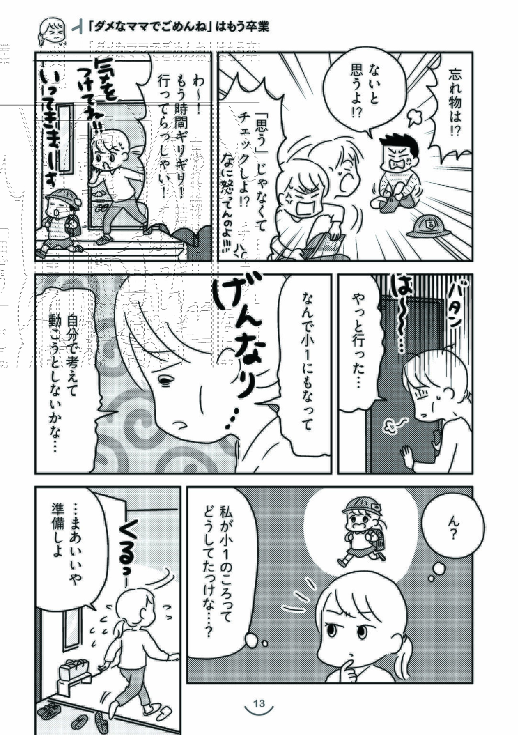 本作は、認知行動療法を応用し、生活上の工夫をすることで学童期の子育てを楽にする方法を解説した実用漫画です。