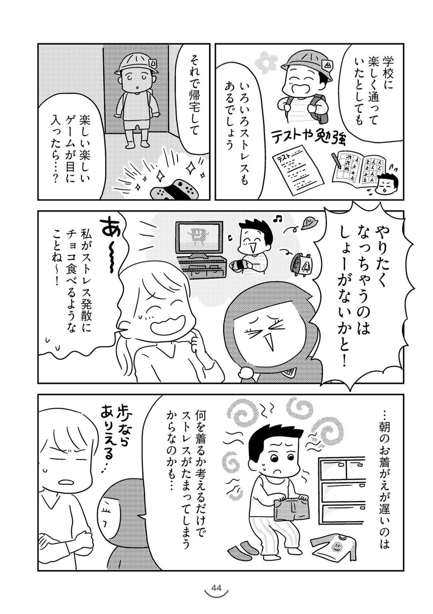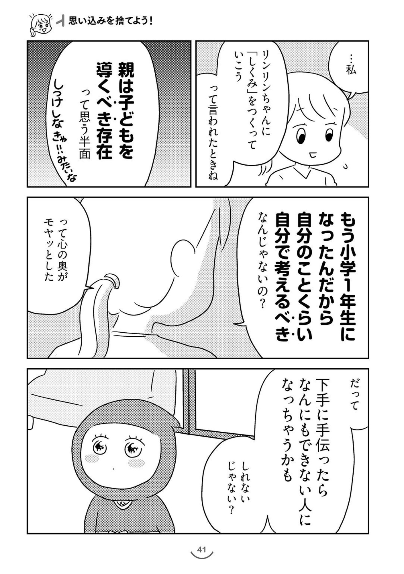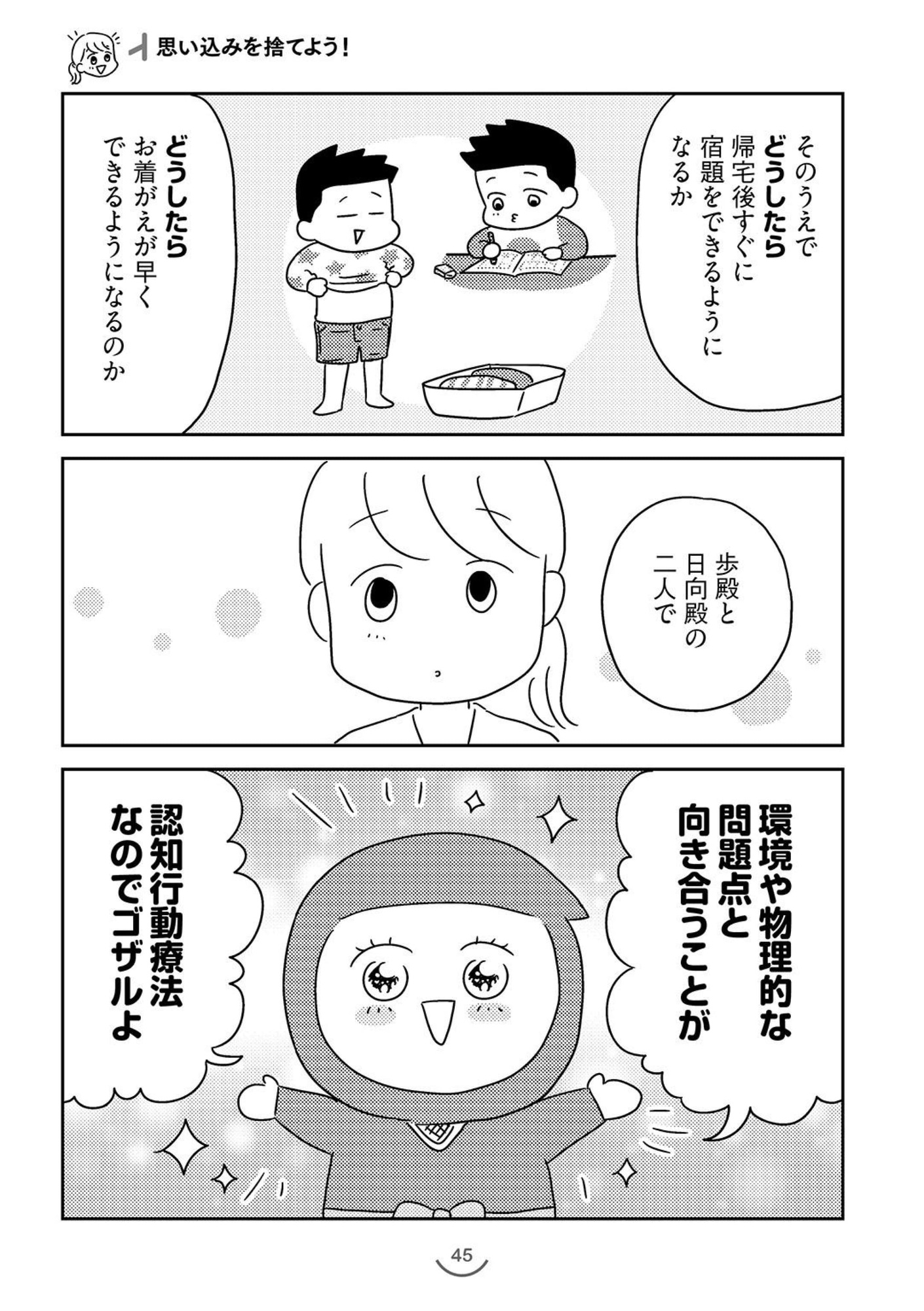 本作は、認知行動療法を応用し、生活上の工夫をすることで学童期の子育てを楽にする方法を解説した実用漫画です。