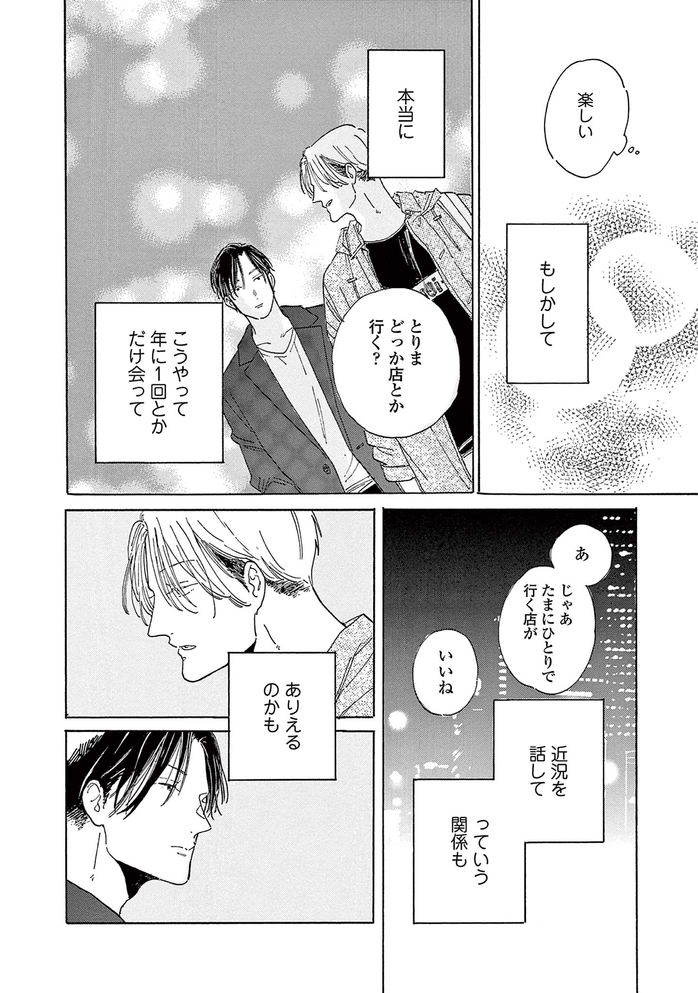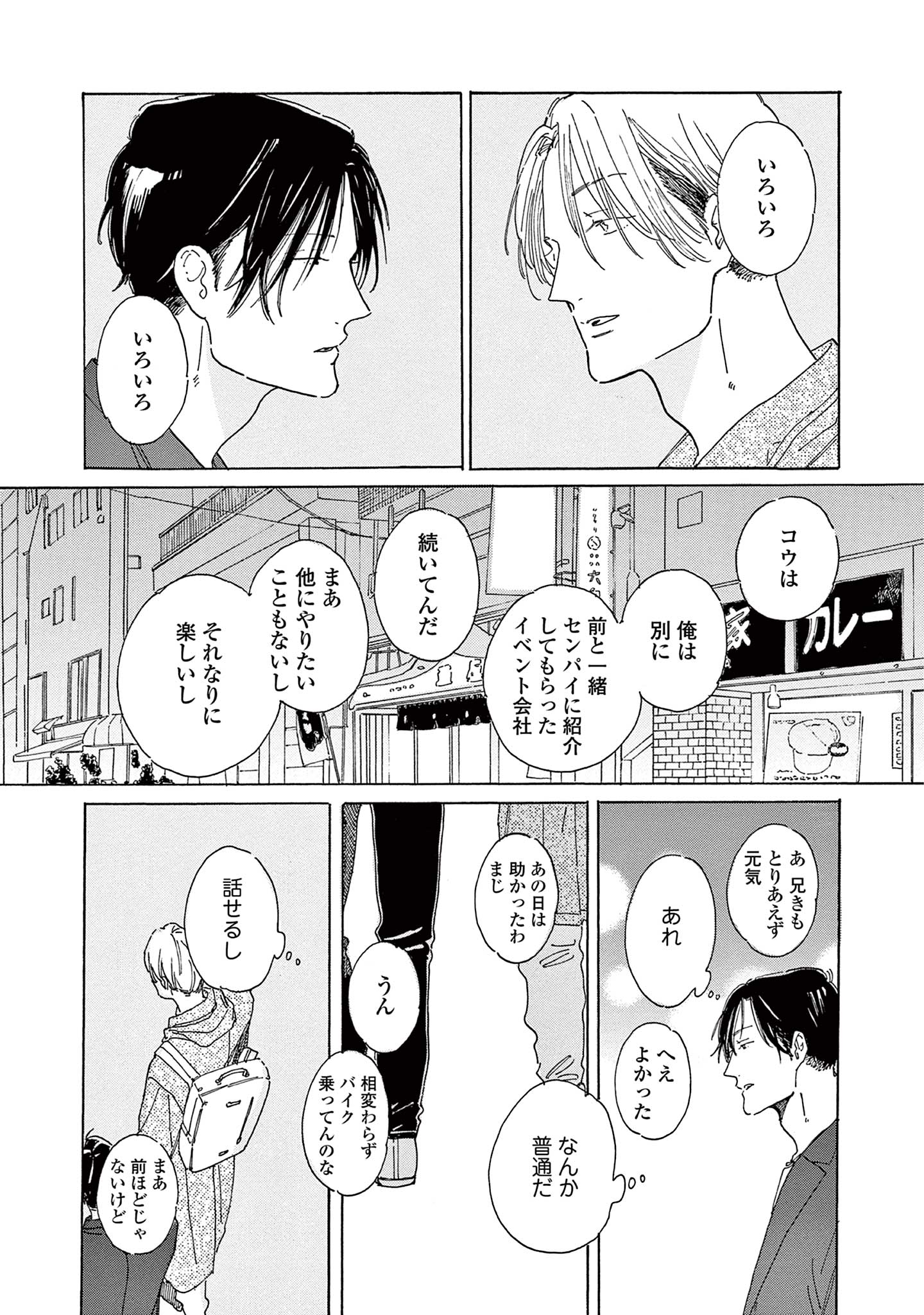 本作は、秀良子さんの『STAYGOLD』 の流れを継ぐ、コウと日高の“失恋のその後”を描くBLストーリーです。大学4年の夏に親友の日高とセフレになったコウは、結局は日高の想いを拒んだ形で卒業する。社会人になって日高と再会するが、そこに突然「島で世話になった吉田さん」が現れて…。