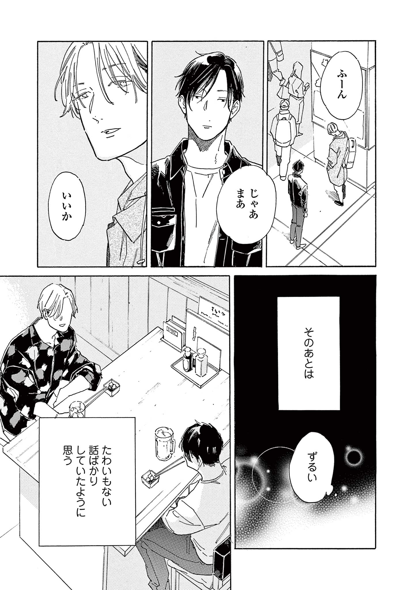 本作は、秀良子さんの『STAYGOLD』 の流れを継ぐ、コウと日高の“失恋のその後”を描くBLストーリーです。大学4年の夏に親友の日高とセフレになったコウは、結局は日高の想いを拒んだ形で卒業する。社会人になって日高と再会するが、そこに突然「島で世話になった吉田さん」が現れて…。