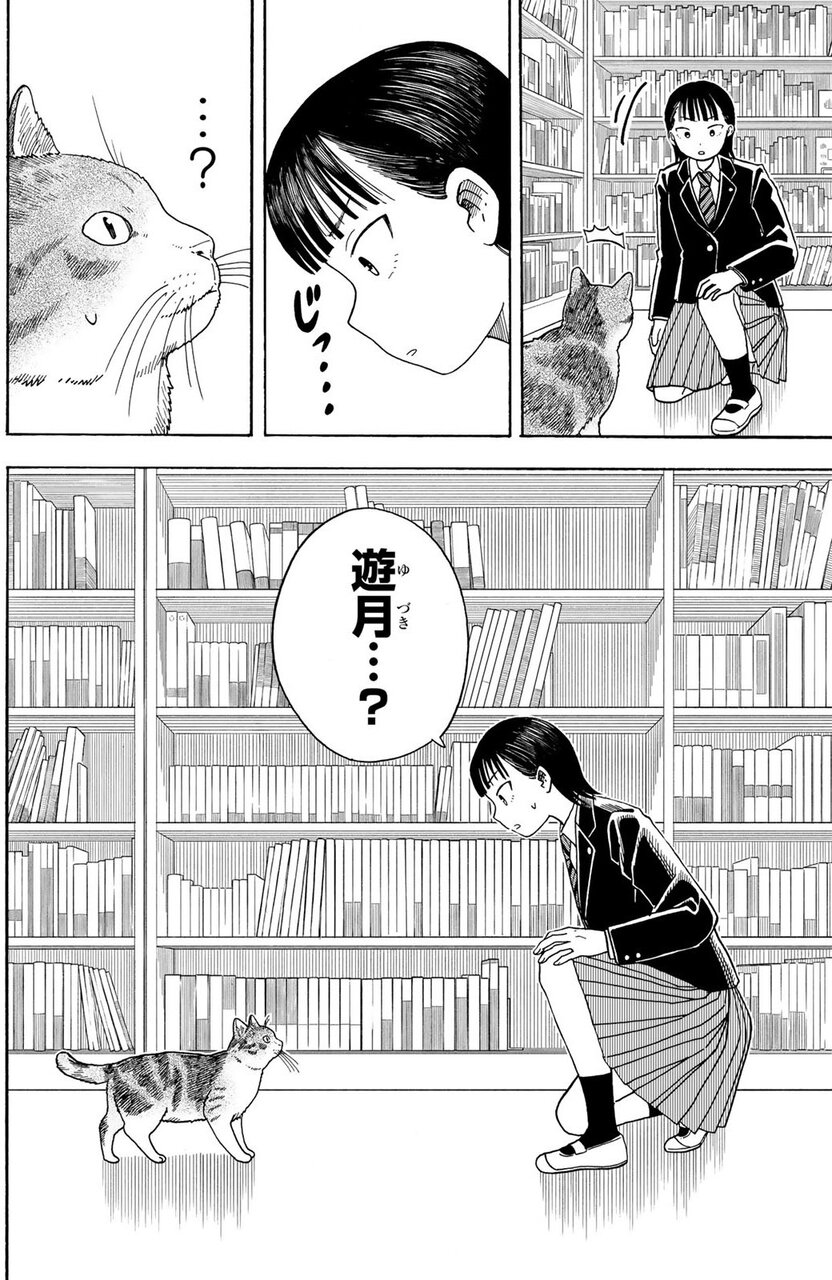 放課後に図書室で勉強を始めたふたり。しかしテスト勉強が嫌すぎて遊月は猫に変身。もちろん、晶の前で猫化するわけにはいかないので、慌てて姿を隠したのですが、突如図書室に現れた猫を見つけた晶は、こんな反応をします。