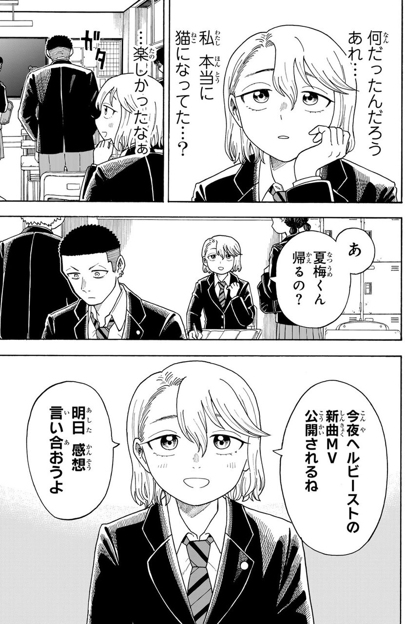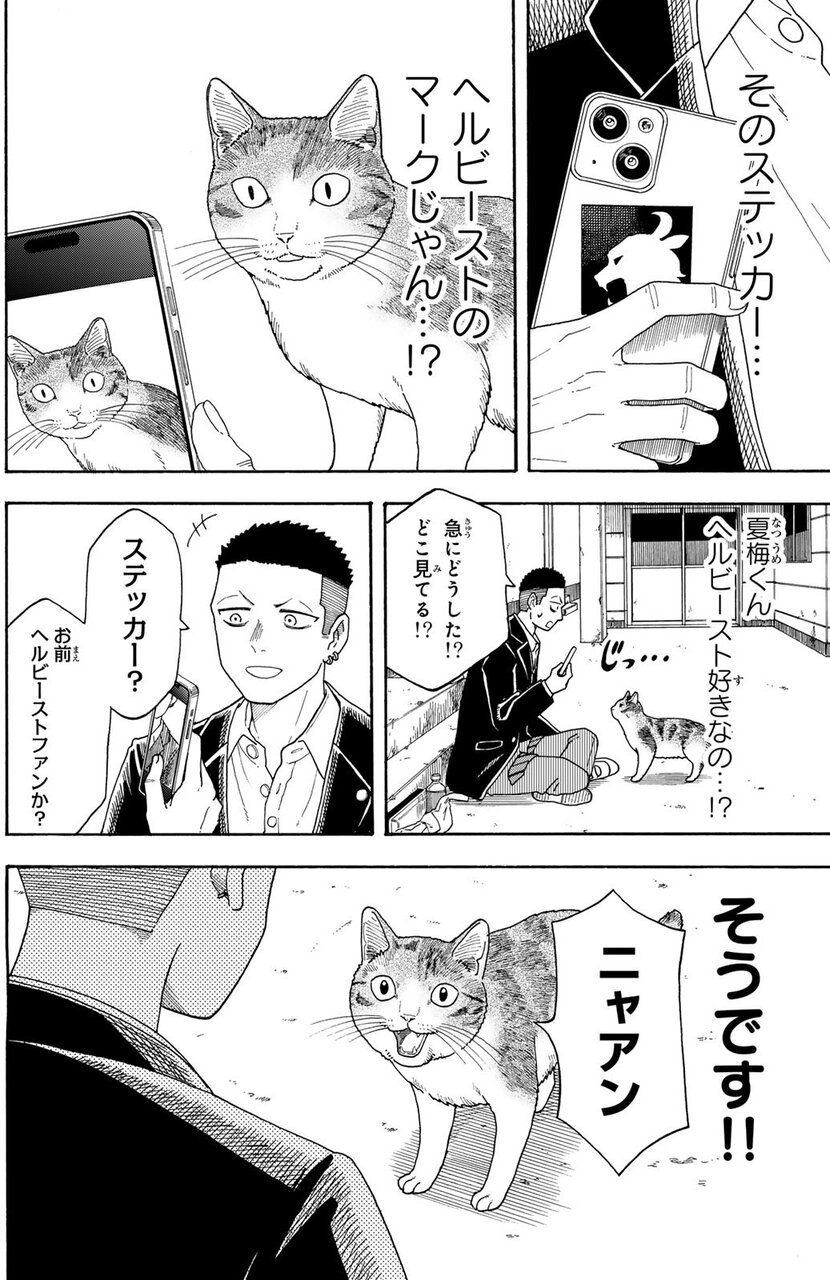 まさかのヘルビースト仲間! このあと夏梅が流す曲に合わせ、猫(遊月)が歌うシーンはほっこり度120%なので、ぜひコミックスでチェックしてほしいところ。