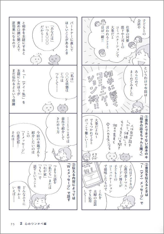 私自身、特に心に響いたのはパートナーとのコミュニケーションに関するヒントです。協力的であるはずの夫に対しても「そうじゃない」「もっとこうしてほしい」と思ってしまうときがあり、どうすり合わせればいいのか分からないまま自分で抱え込んでしまうことがありました。