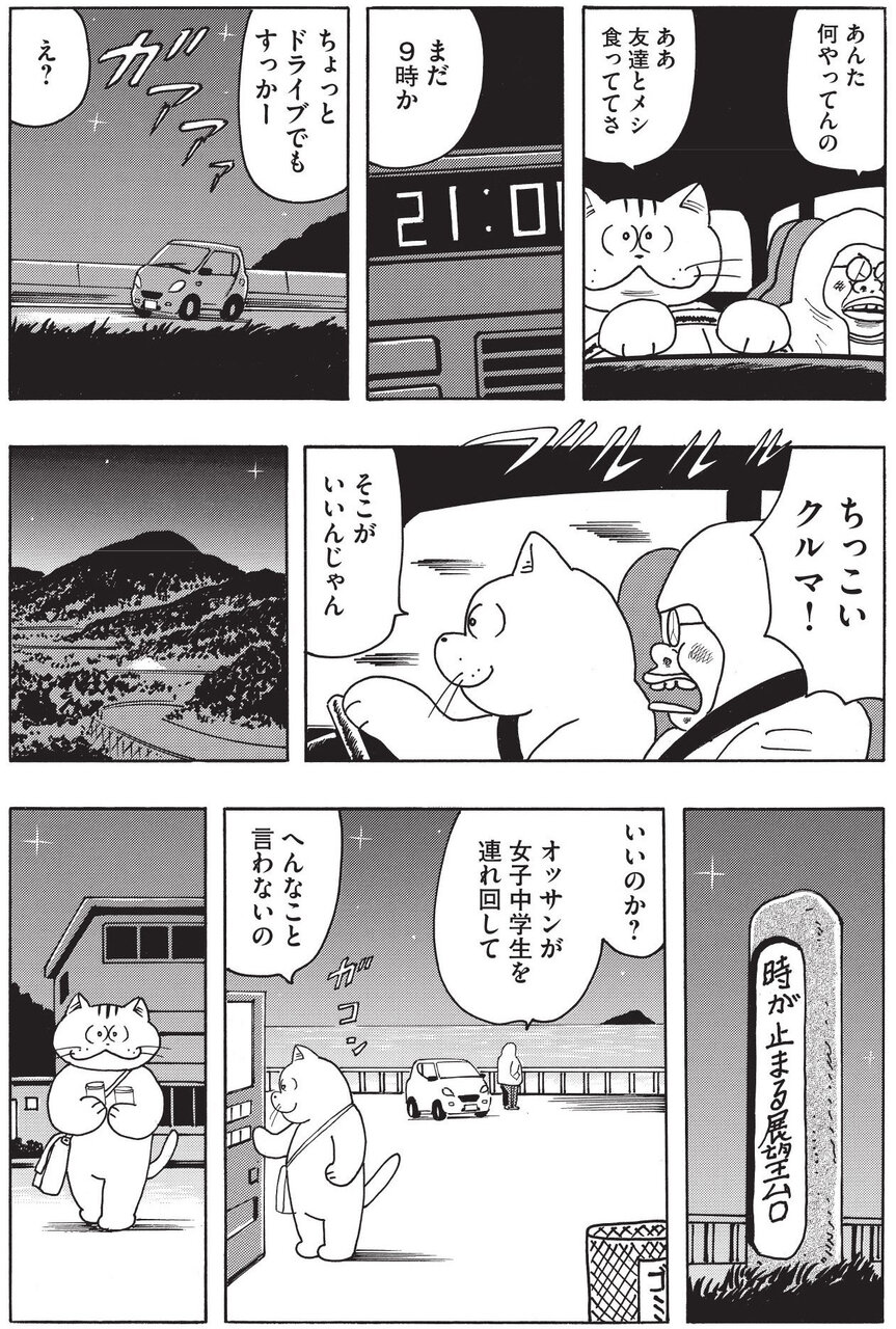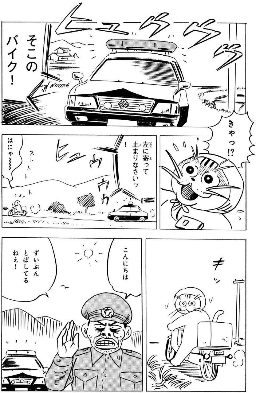 お巡りさんに止められて気まずそうな顔のあんずちゃん! かわいい。ということで、池照町のみなさんも化け猫あんずちゃんの存在をフツーに受け入れている。無免許のあんずちゃんにド説教したり、マッサージを依頼したり(あんずちゃんは出張マッサージの仕事をしている。化け猫パワーなのか良きセラピストとして愛されている)、小学生男子が慕ったり。みんなの日常になじみまくっている。
