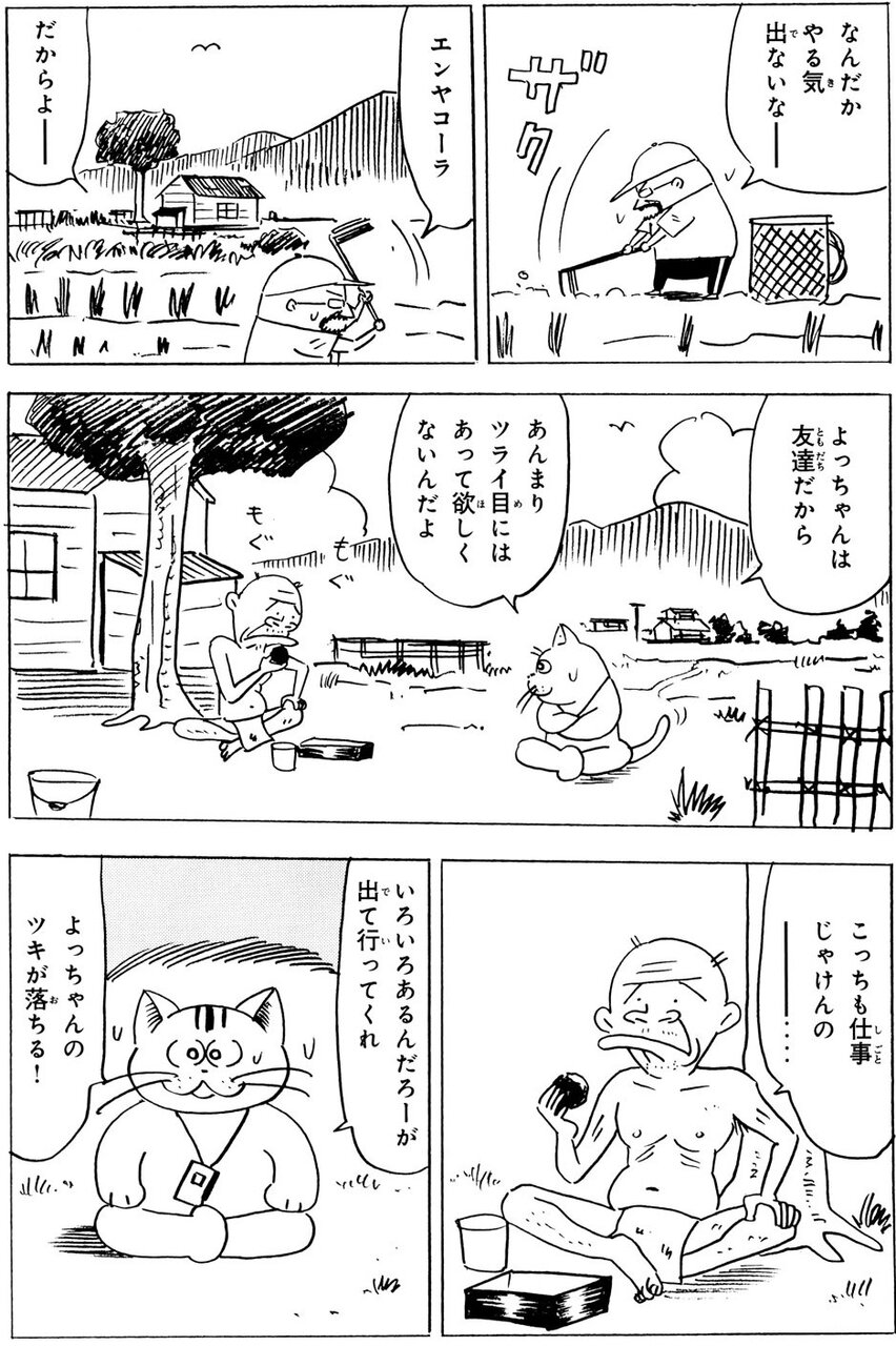 猫だが9割方おっさんなので、しぐさも言動も完全におっさんのそれだ。釣りやパチンコも大好き。でもやっぱり丸っこい背中やヒゲの感じは実に猫。あと、実はとても優しい。