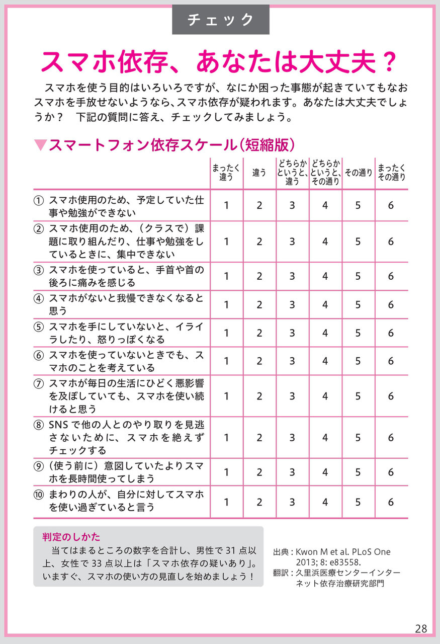スマホ依存の度合いを客観視するためのチェックリストも収録されている。