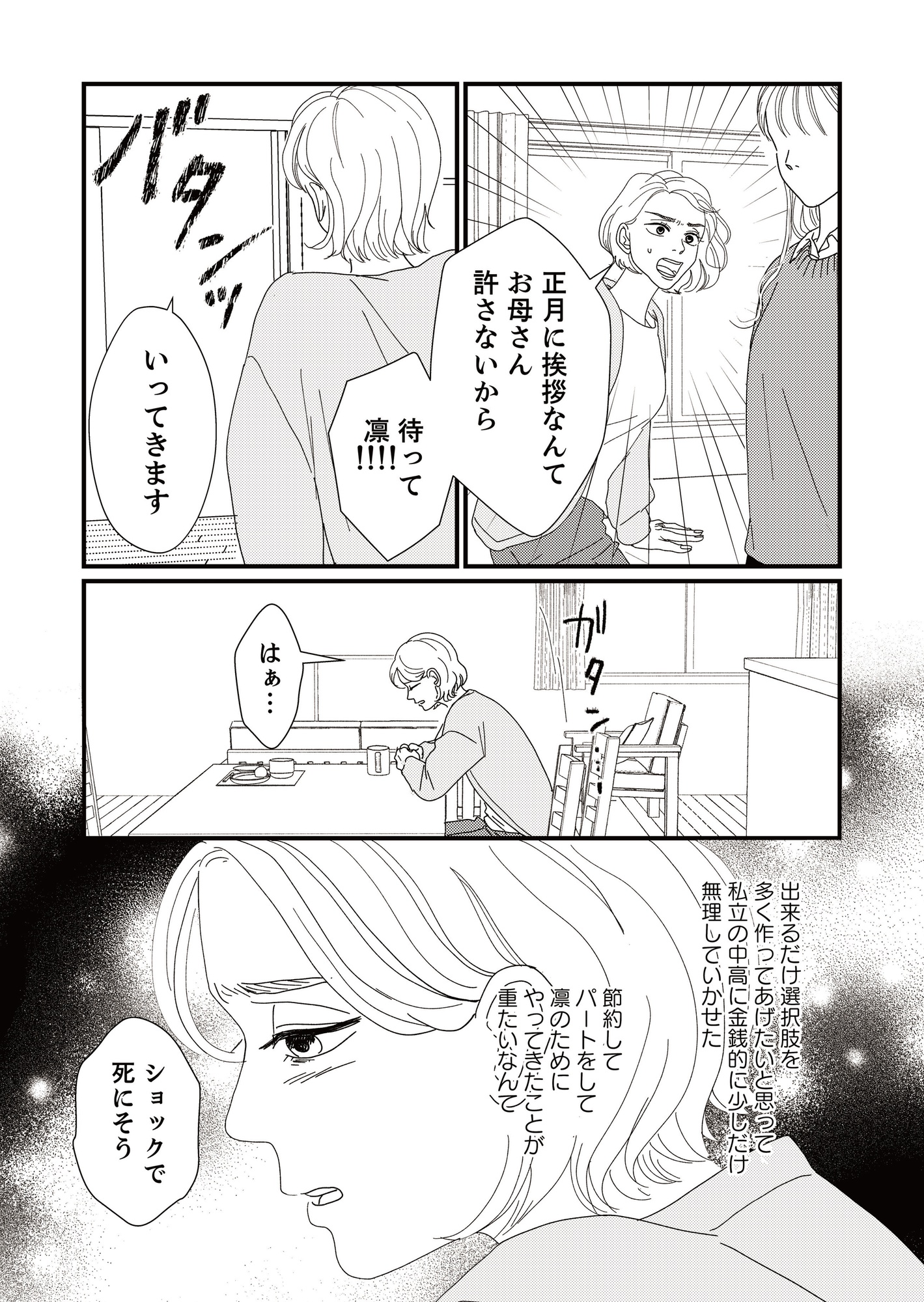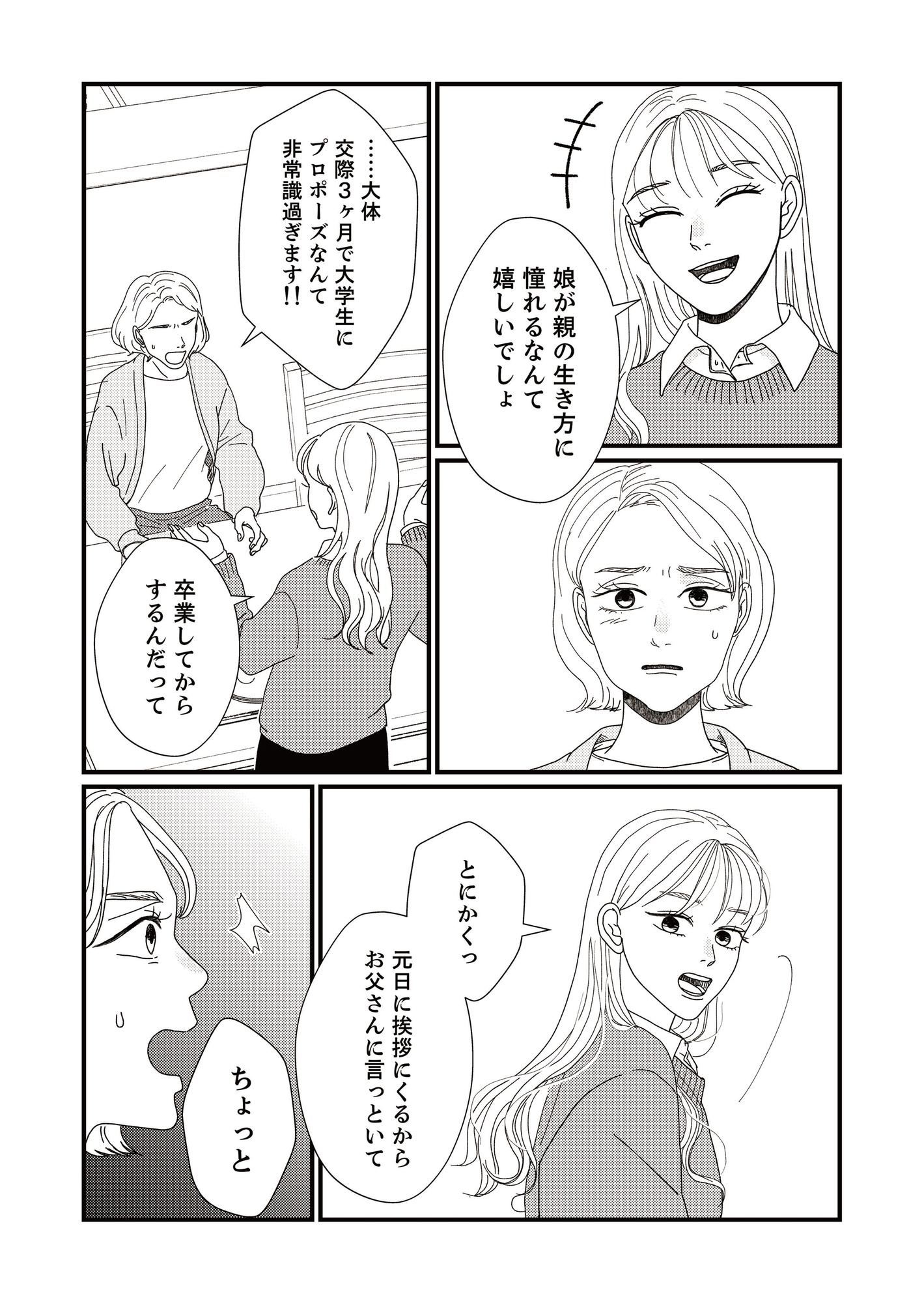 大学3年生の娘・凛が「就活をせずに32歳の彼氏と卒業後に結婚する」と突然言い出し、母親・梅田恵美は頭を抱えますが、娘の結婚を阻止するために奔走します。親の期待から離れようとする娘と、娘を守りたい母親の人間ドラマです。