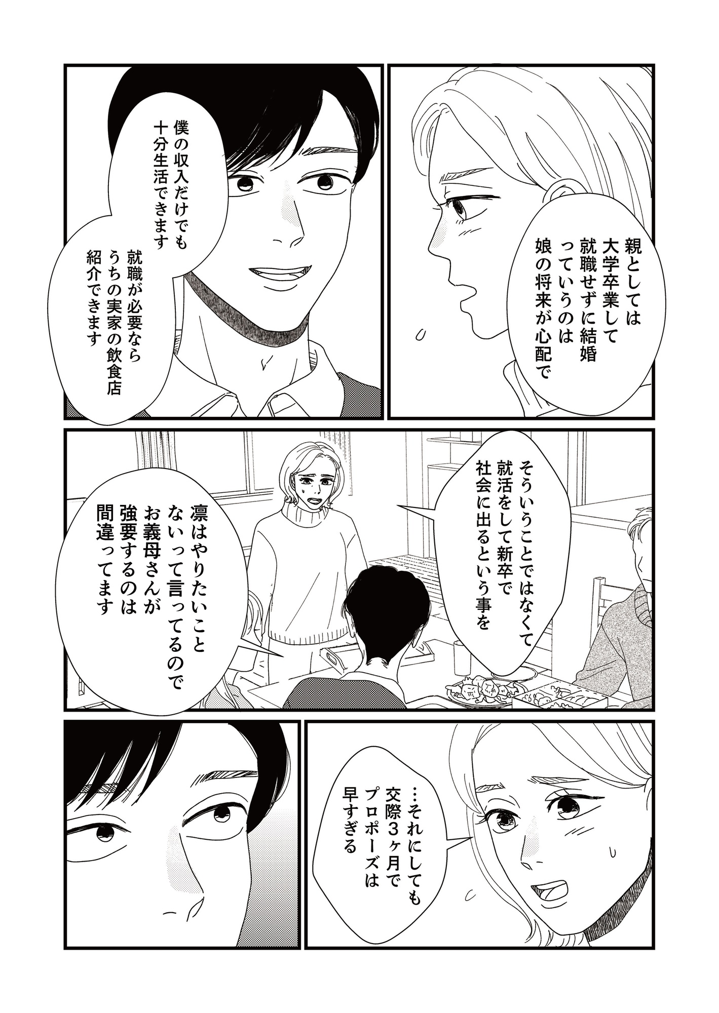 大学3年生の娘・凛が「就活をせずに32歳の彼氏と卒業後に結婚する」と突然言い出し、母親・梅田恵美は頭を抱えますが、娘の結婚を阻止するために奔走します。親の期待から離れようとする娘と、娘を守りたい母親の人間ドラマです。