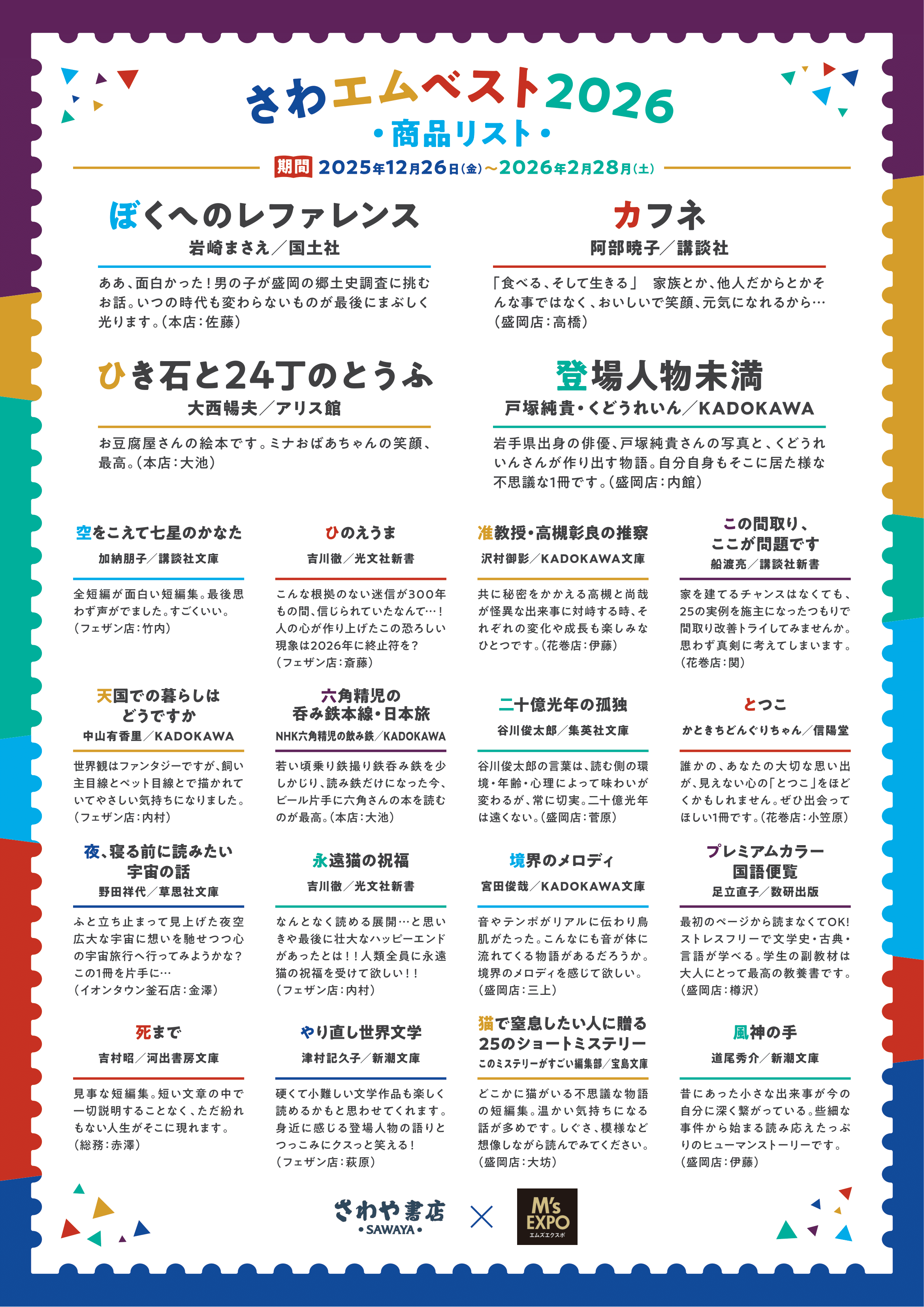 お近くの方はぜひ、両書店の店舗で「さわエムベスト2026」フェアをお楽しみください。