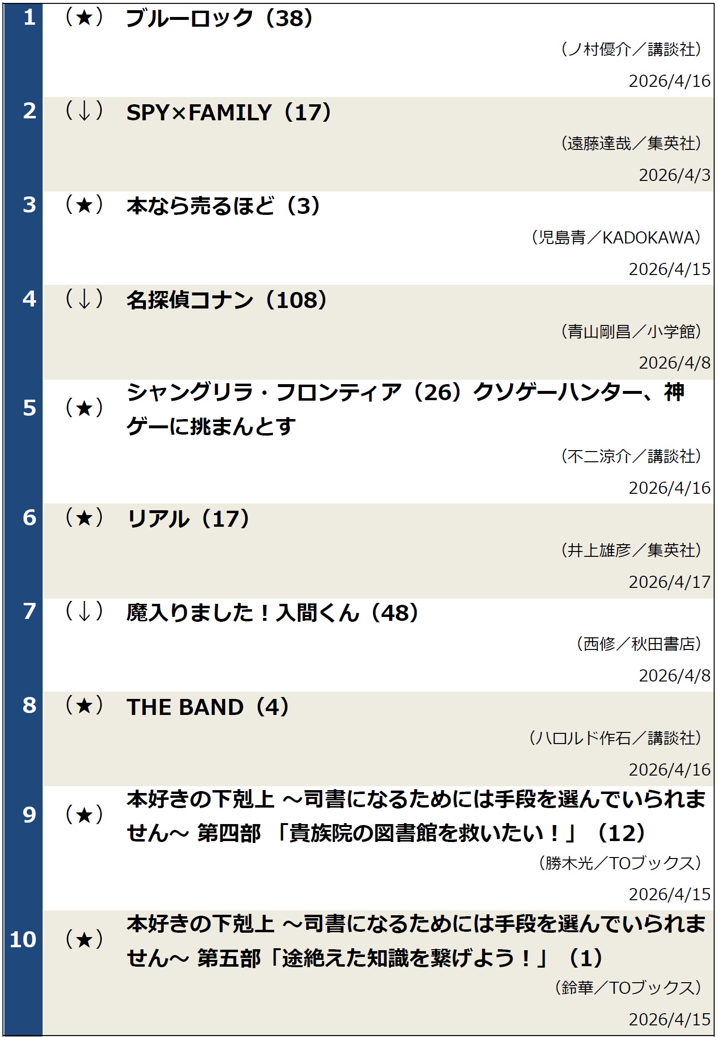 『ブルーロック』『本なら売るほど』最新巻が初登場|週間コミックランキング(2026年4月21日調べ)