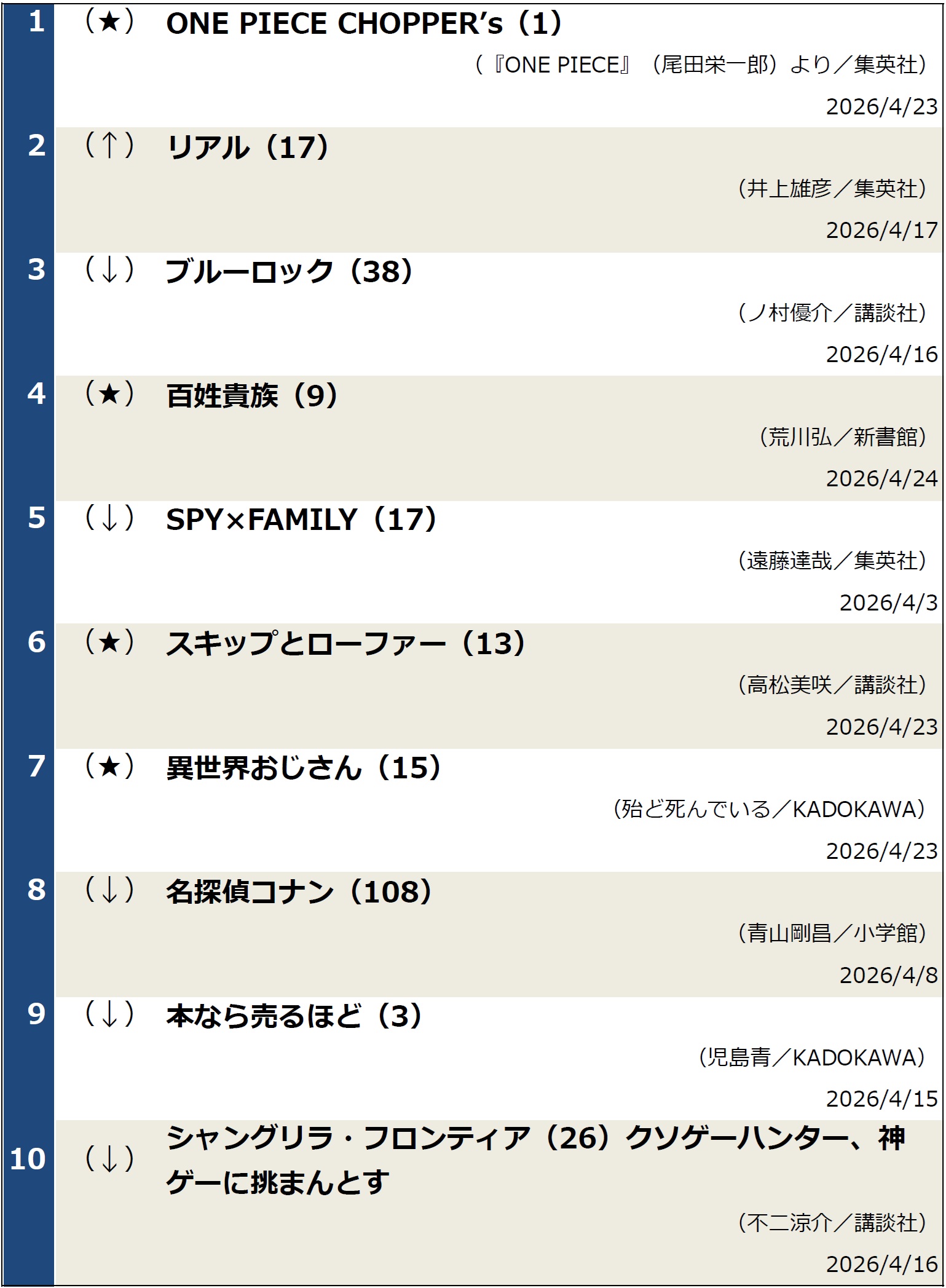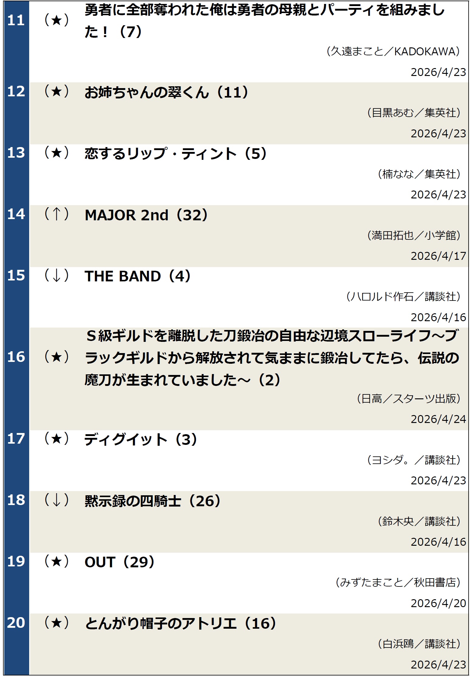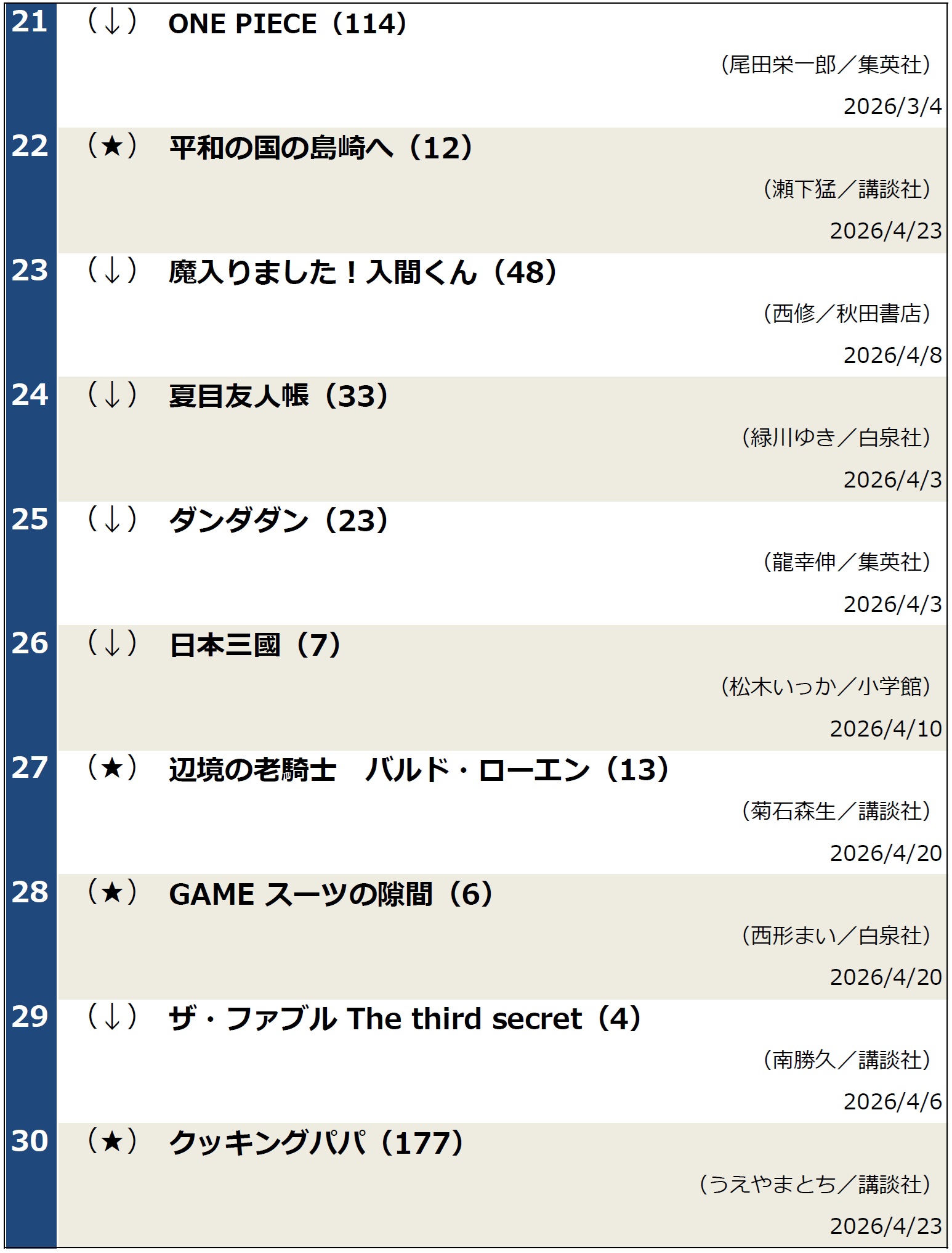 ・調査期間:2026年4月20日~4月26日 日販調べ