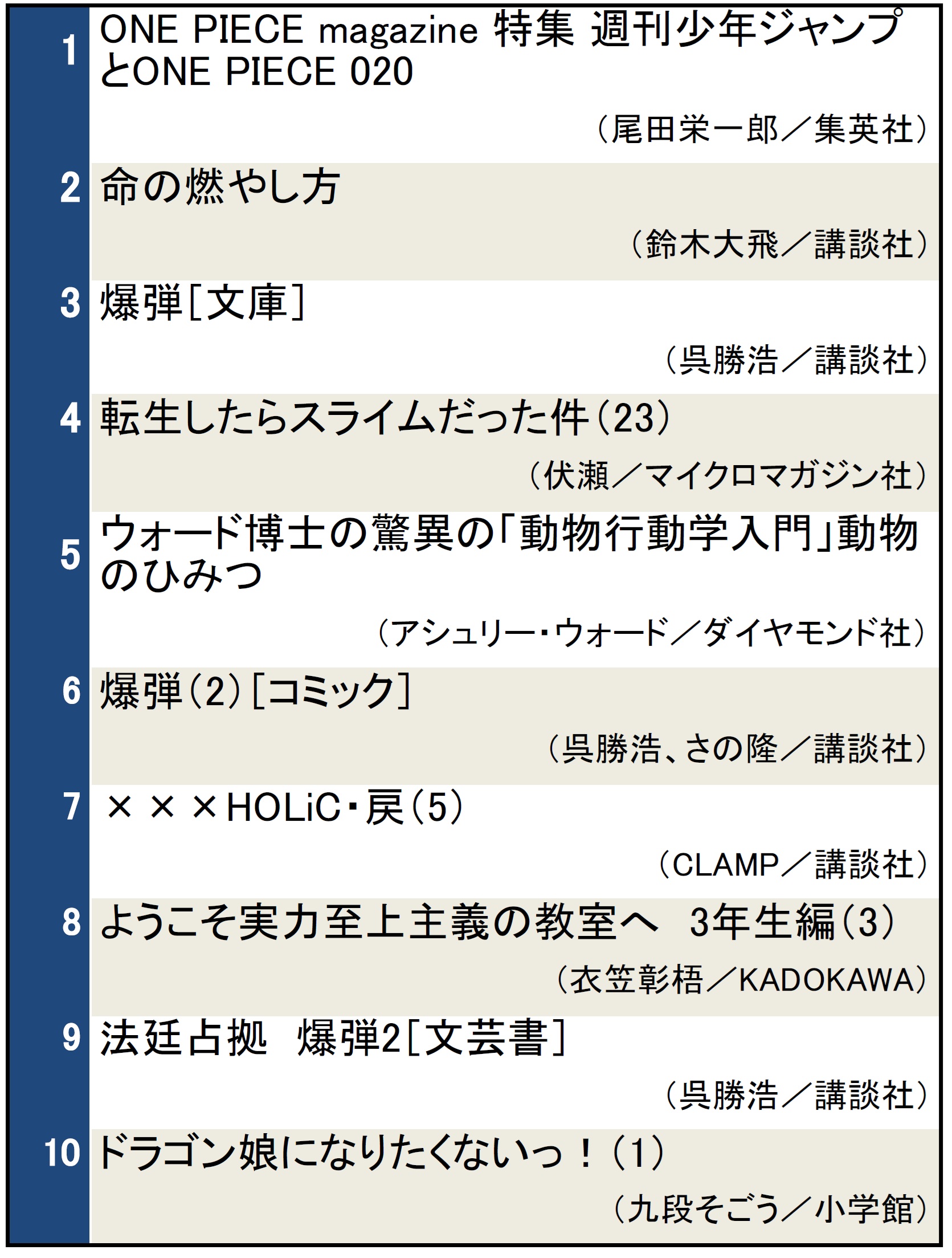 今回のランキングには、『×××HOLiC・戻』第5巻がランクインしました(第7位)。